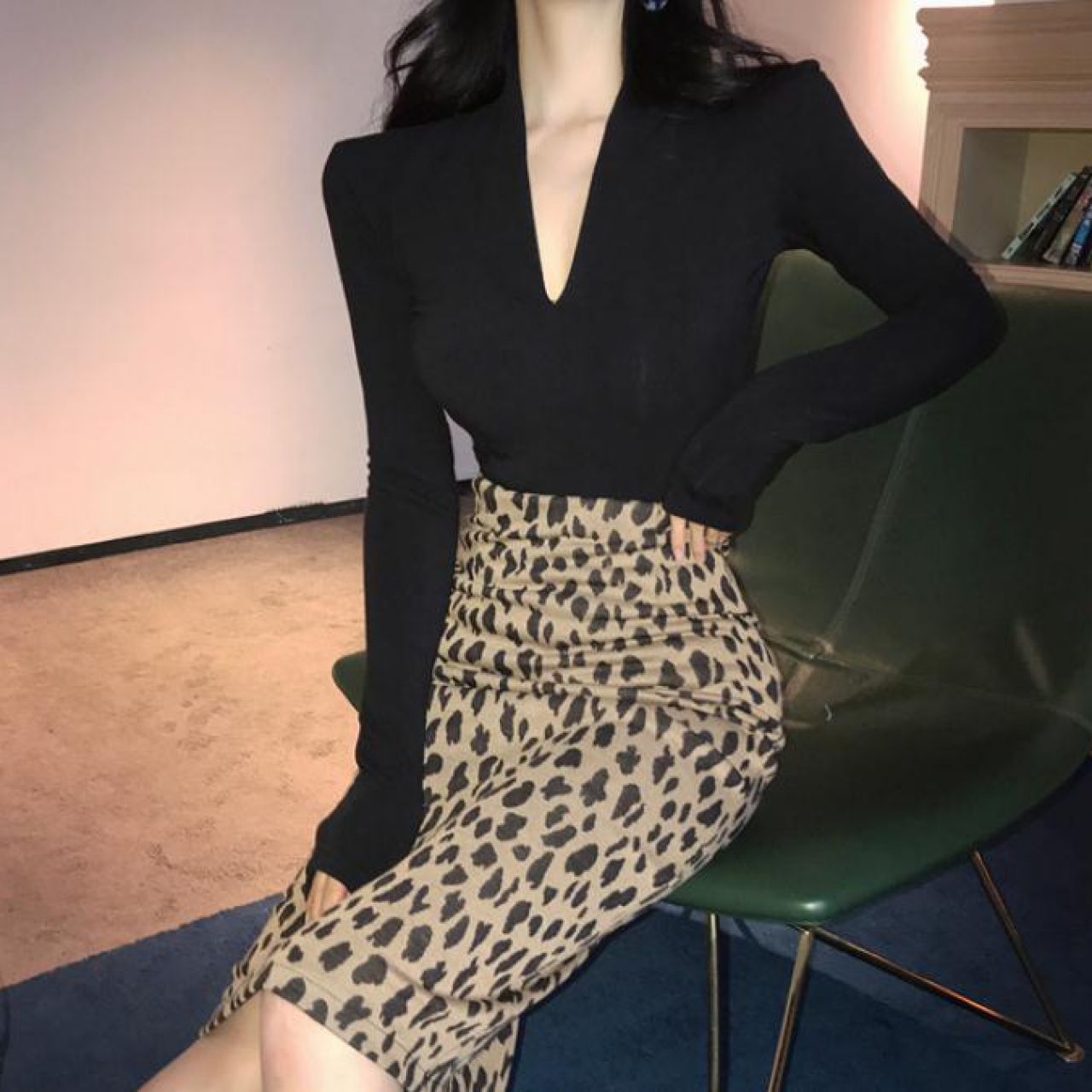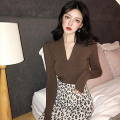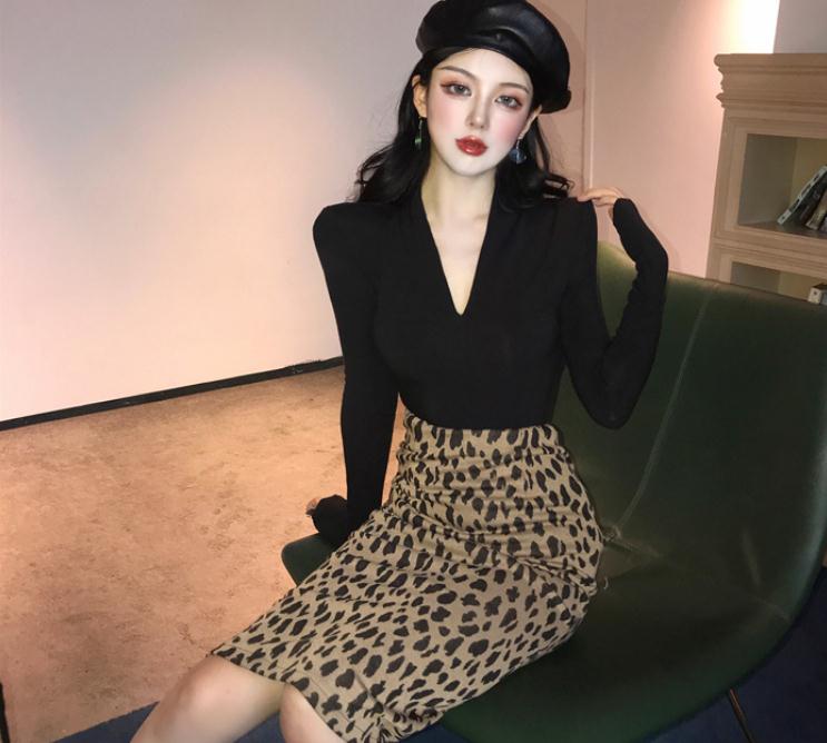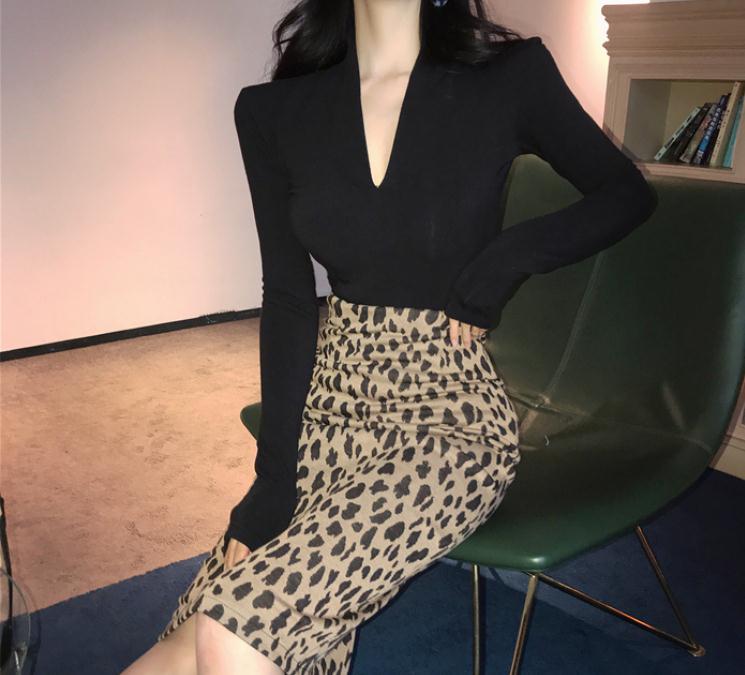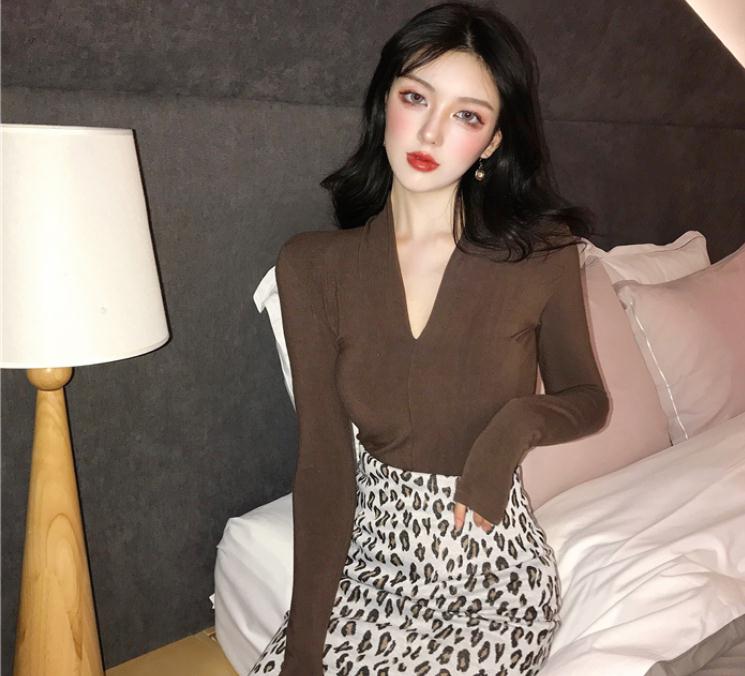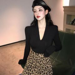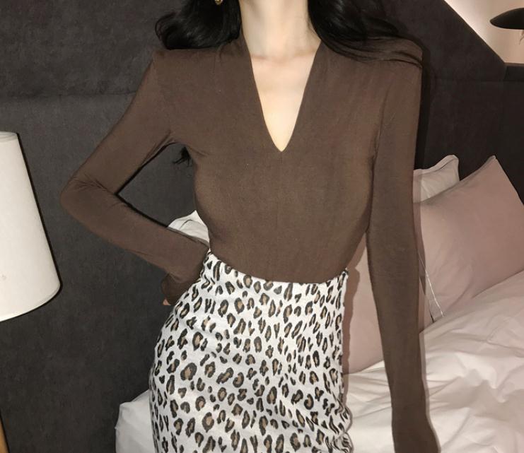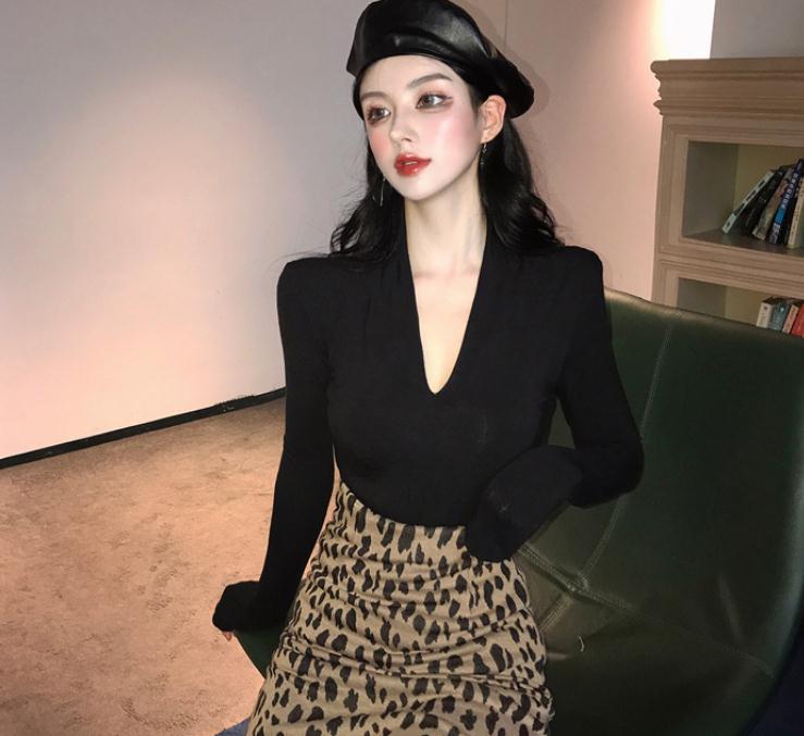 V领黑色长袖T恤女秋季2020新款时尚气质修身显瘦百搭打底衫上衣女