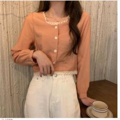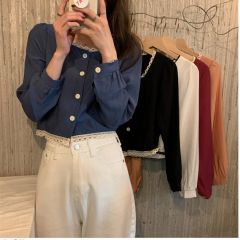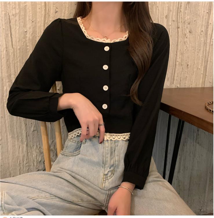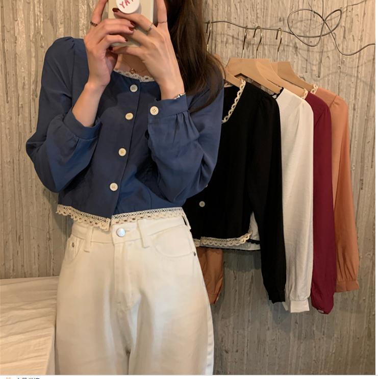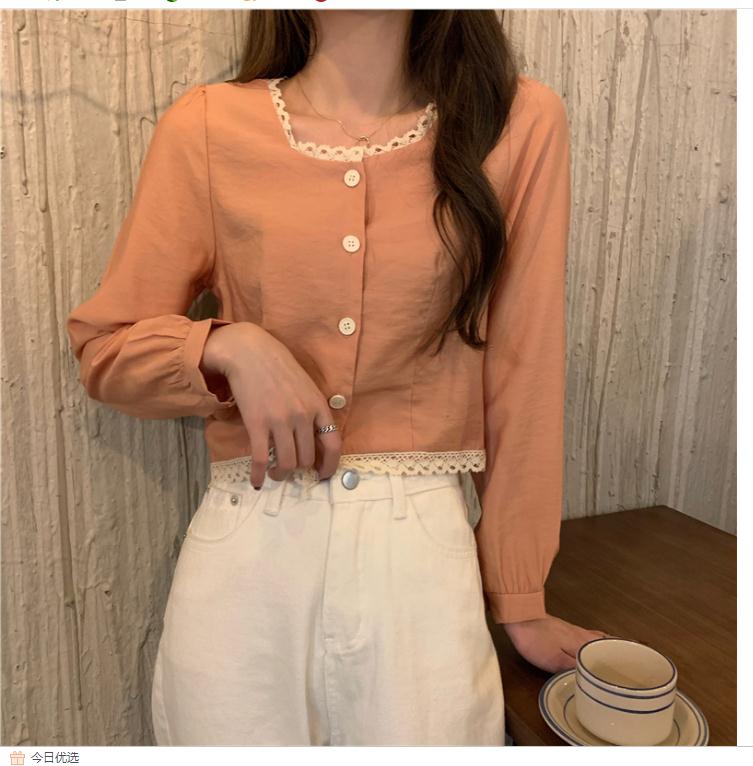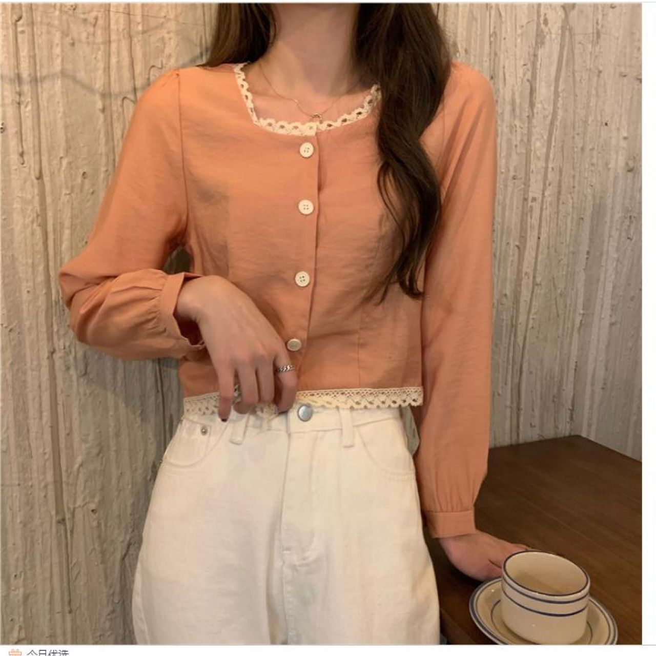 秋季2020年新款法式花边方领衬衫女设计感小众洋气质宽松外穿长袖
