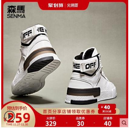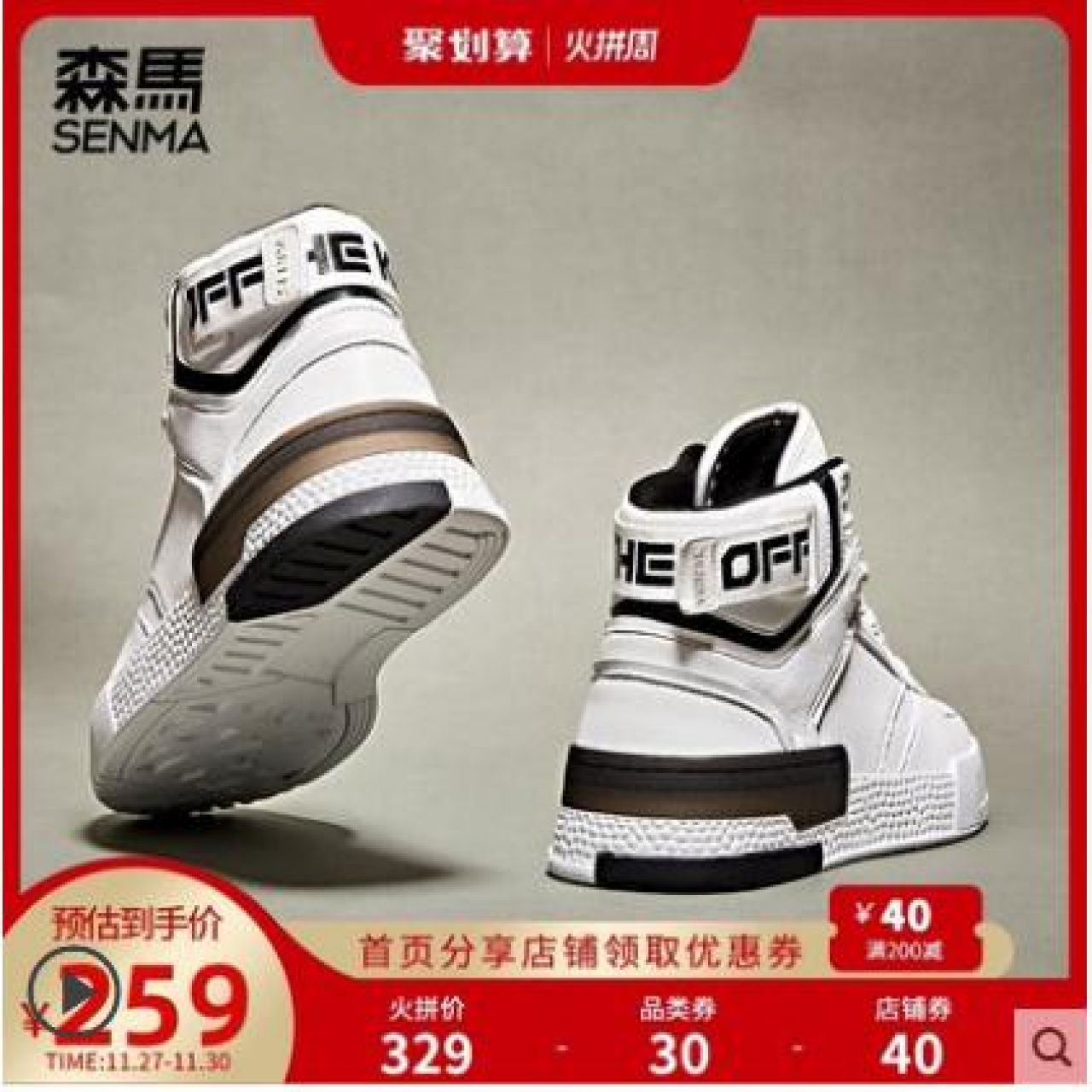 森马板鞋子男高帮韩版潮流2020新款秋冬季加绒百搭白色潮鞋休闲鞋