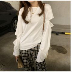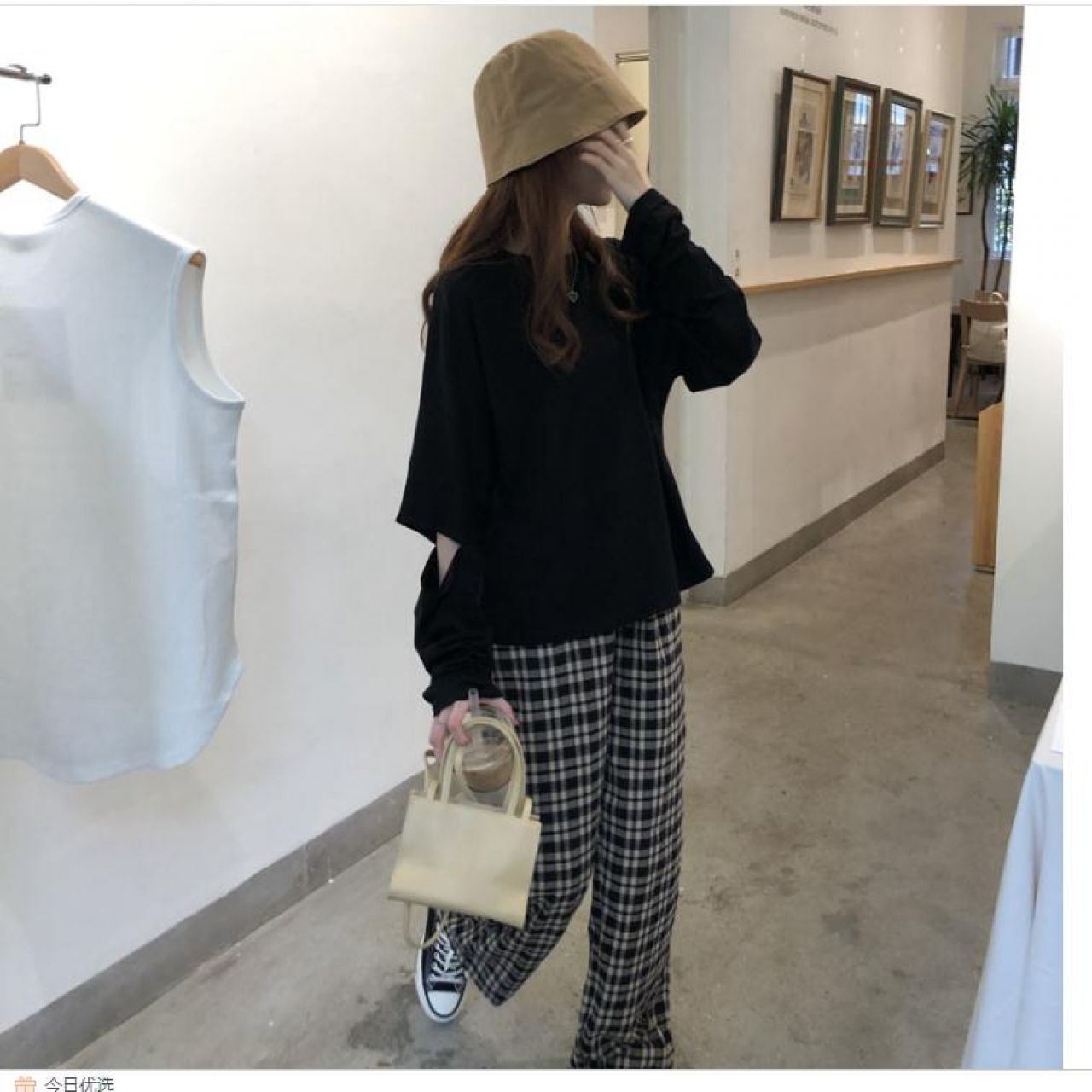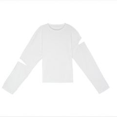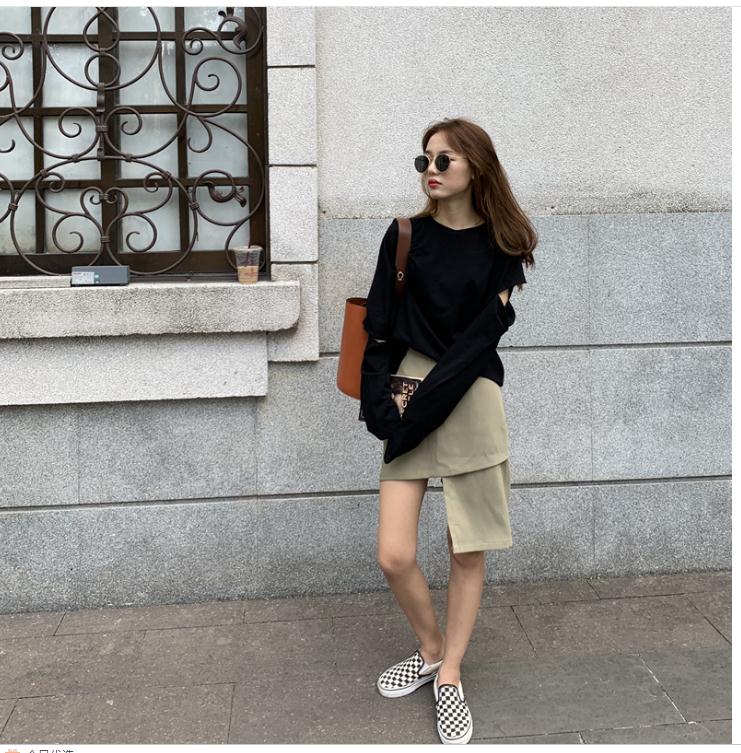 乌77酷帅破洞白色T恤女韩版宽松显瘦圆领中长款上衣长袖防晒衫