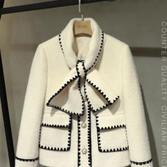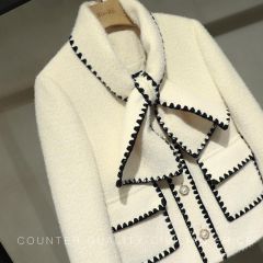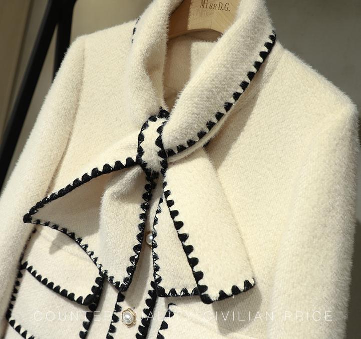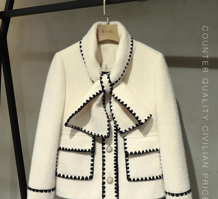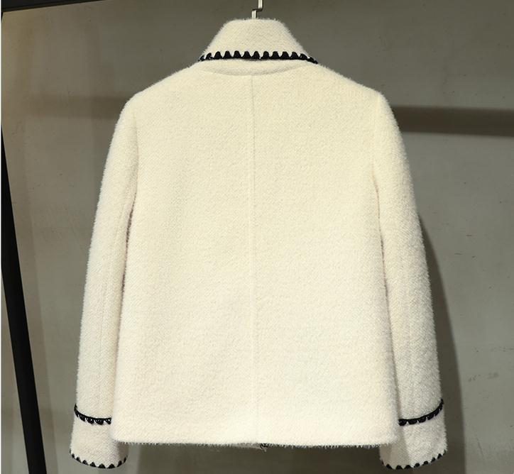 Miss DG白色小香名媛风毛呢外套女2020冬季仿貂绒短外套百搭洋气