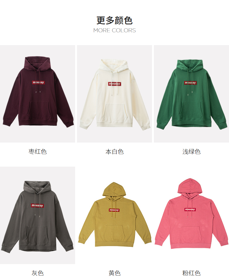 MOUSSY 2020秋季新品经典LOGO字母印花连帽休闲卫衣028DAY90-5040