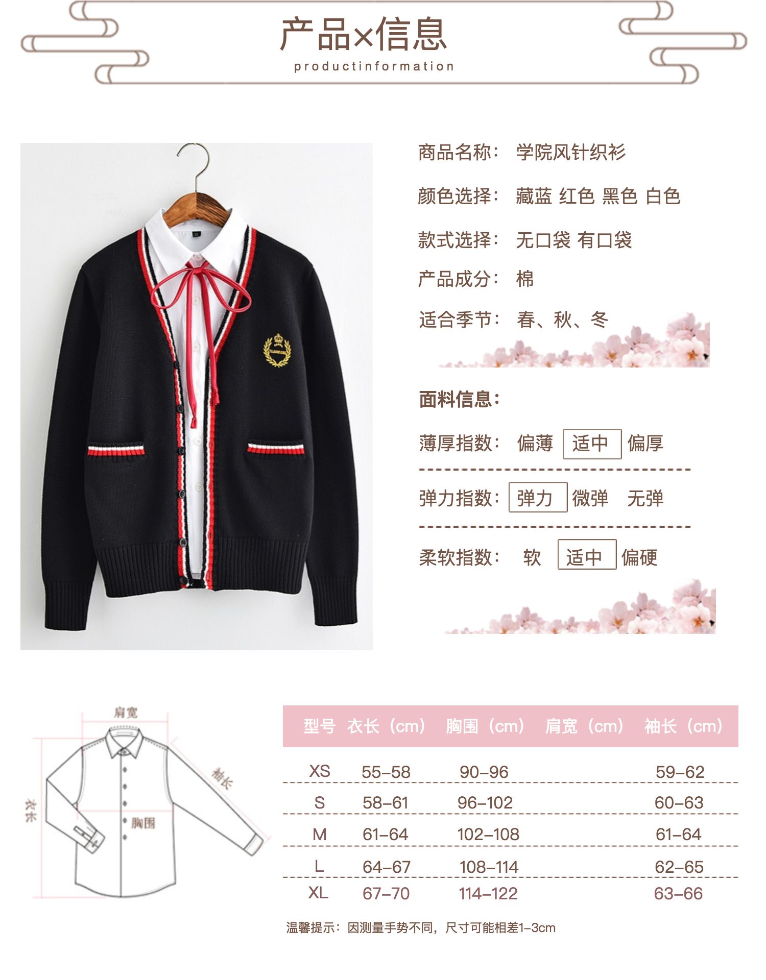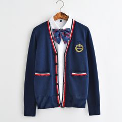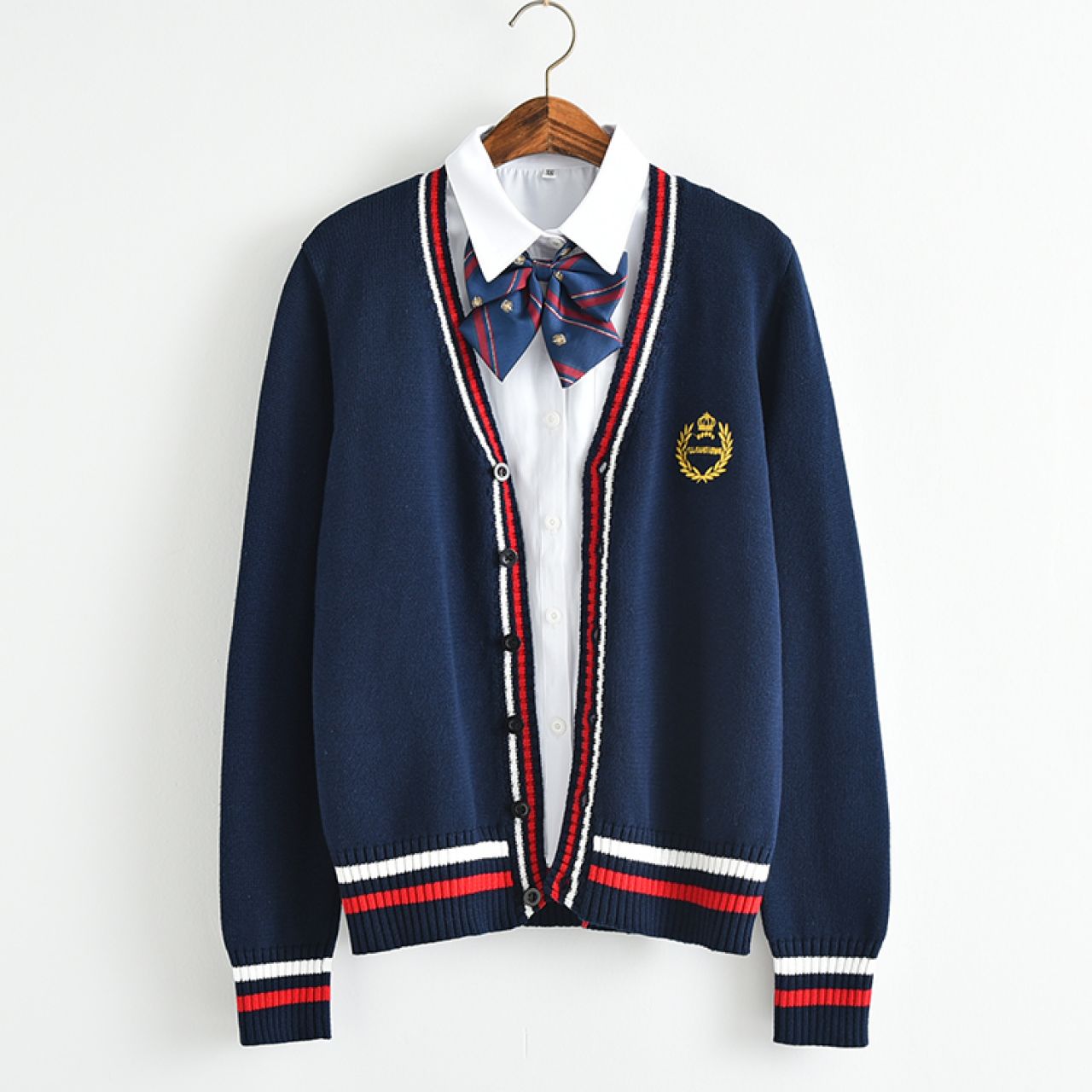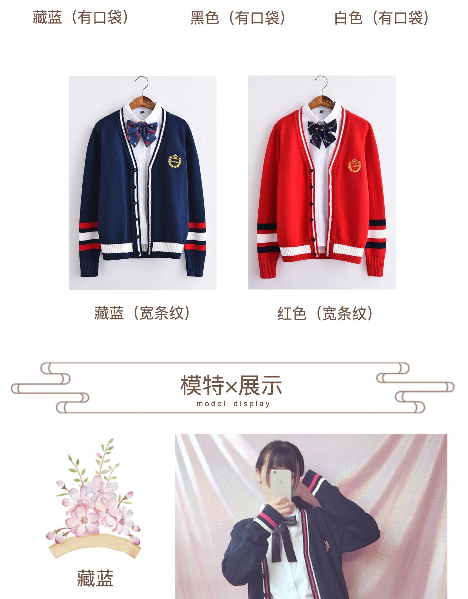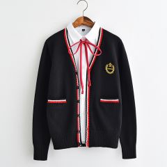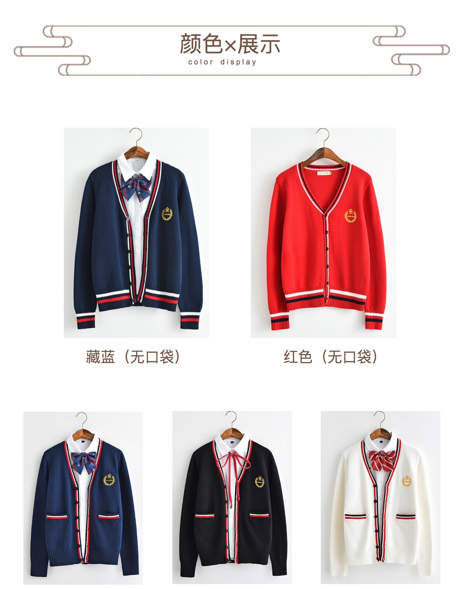秋冬JK制服开衫 皇冠刺绣英伦学院风毛衣外套 宽松大码针织衫校服
