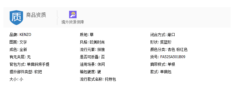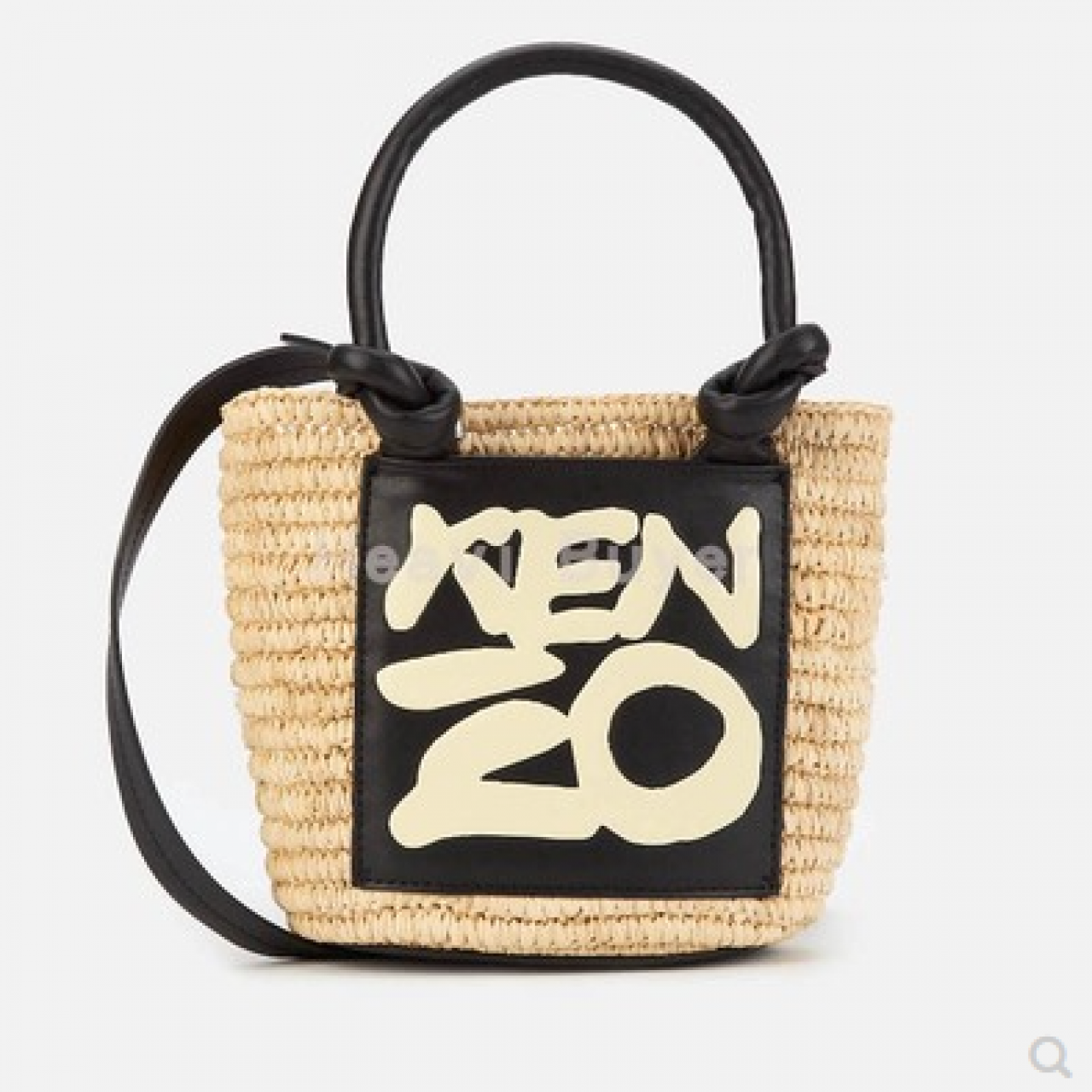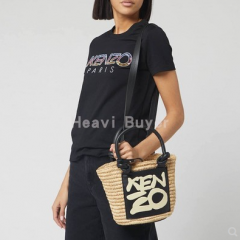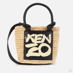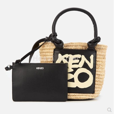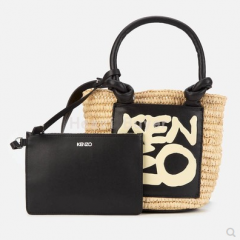 Kenzo 直邮代购 草编牛皮拼接字母小号托特度假托特包女包 20春夏