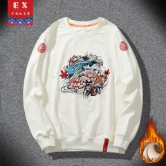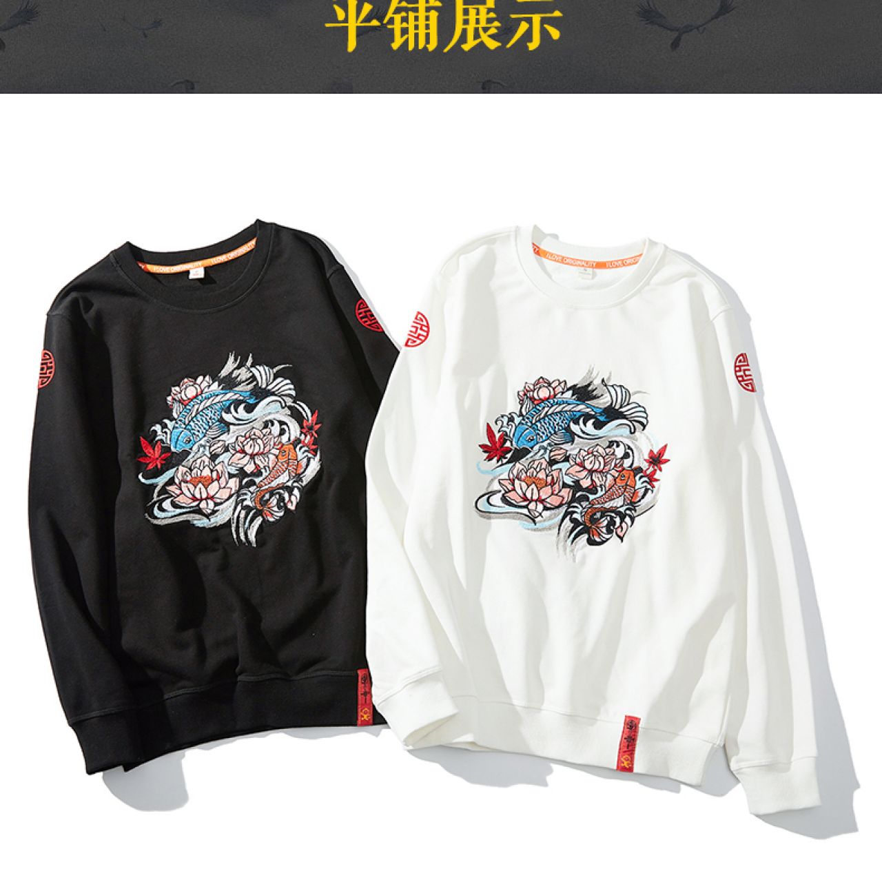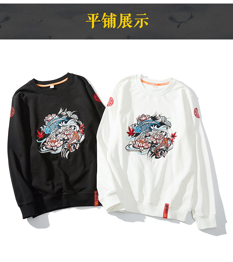 2020春秋季新款中国风刺绣卫衣男薄款长袖鲤鱼国潮大码宽松男装潮