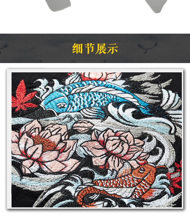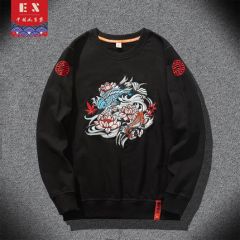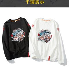 0春秋季新款中国风刺绣卫衣男薄款长袖鲤鱼国潮大码宽松男装潮