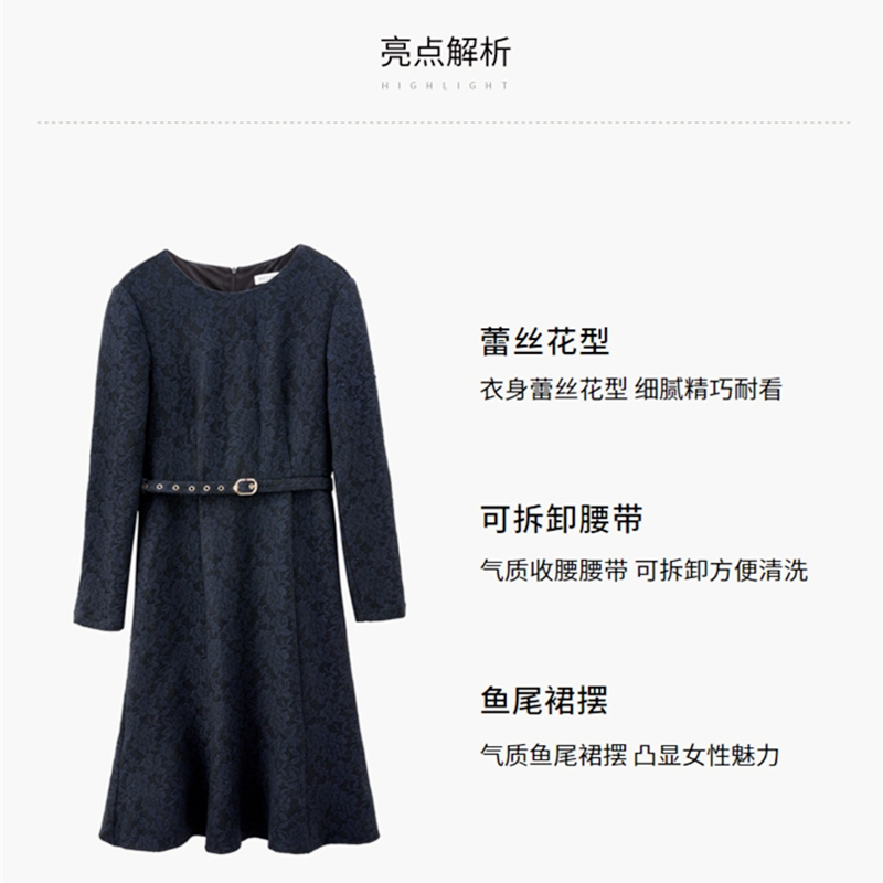 尚都比拉气质收腰显瘦鱼尾裙女装2020新款长袖中长款连衣裙女秋冬