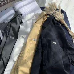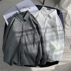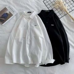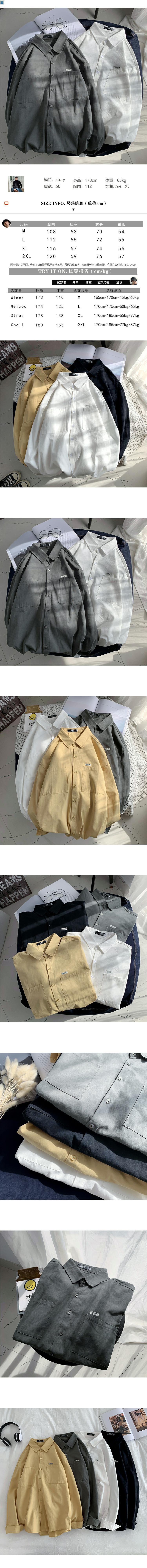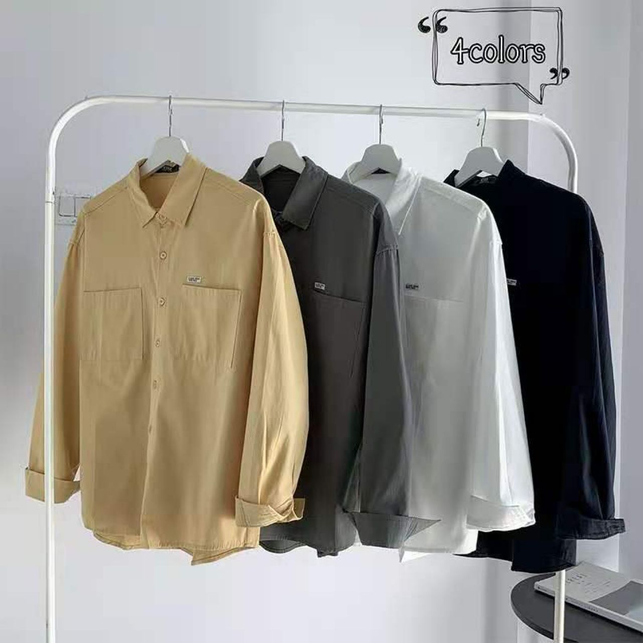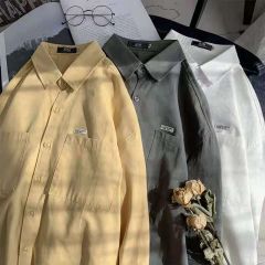 长袖衬衫男秋季新款宽松百搭纯色工装衬衣韩版潮流休闲帅气上衣服