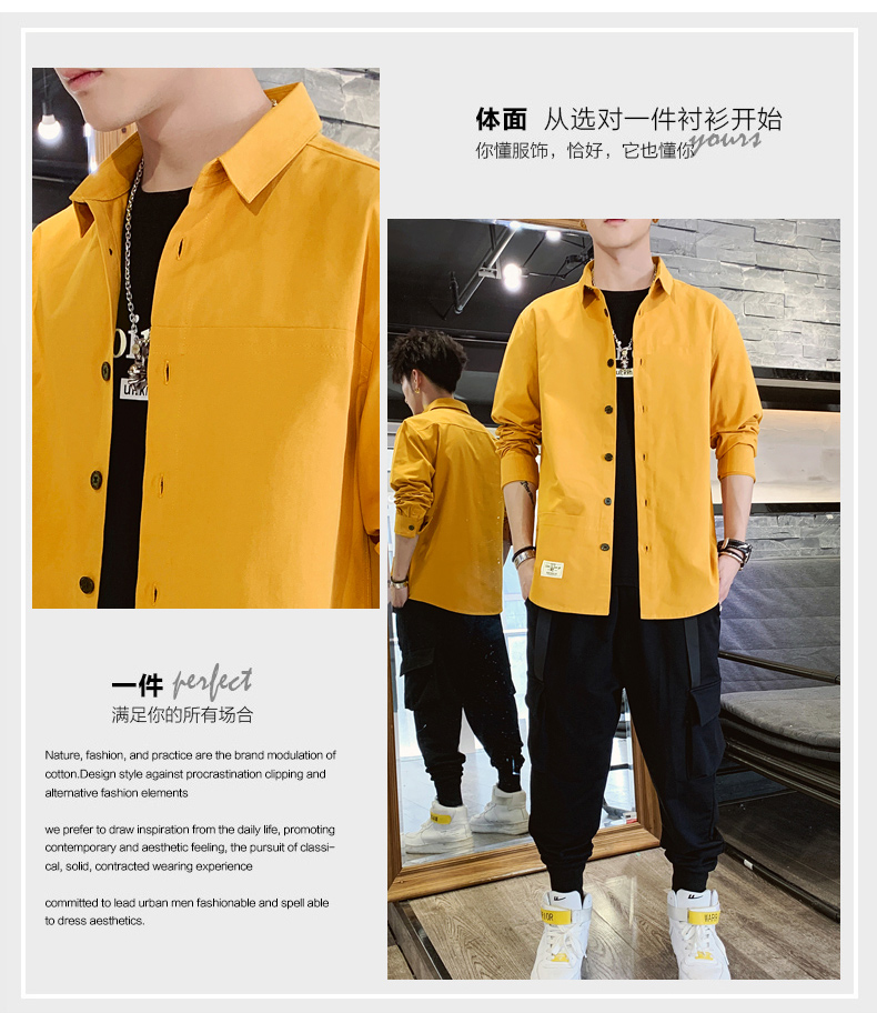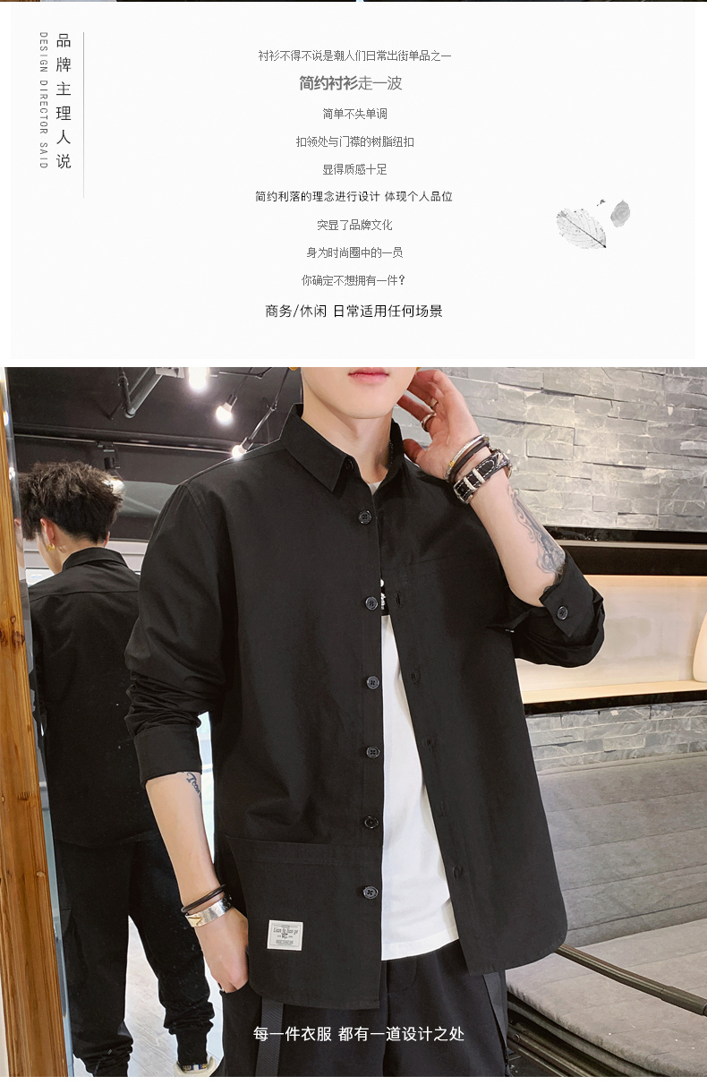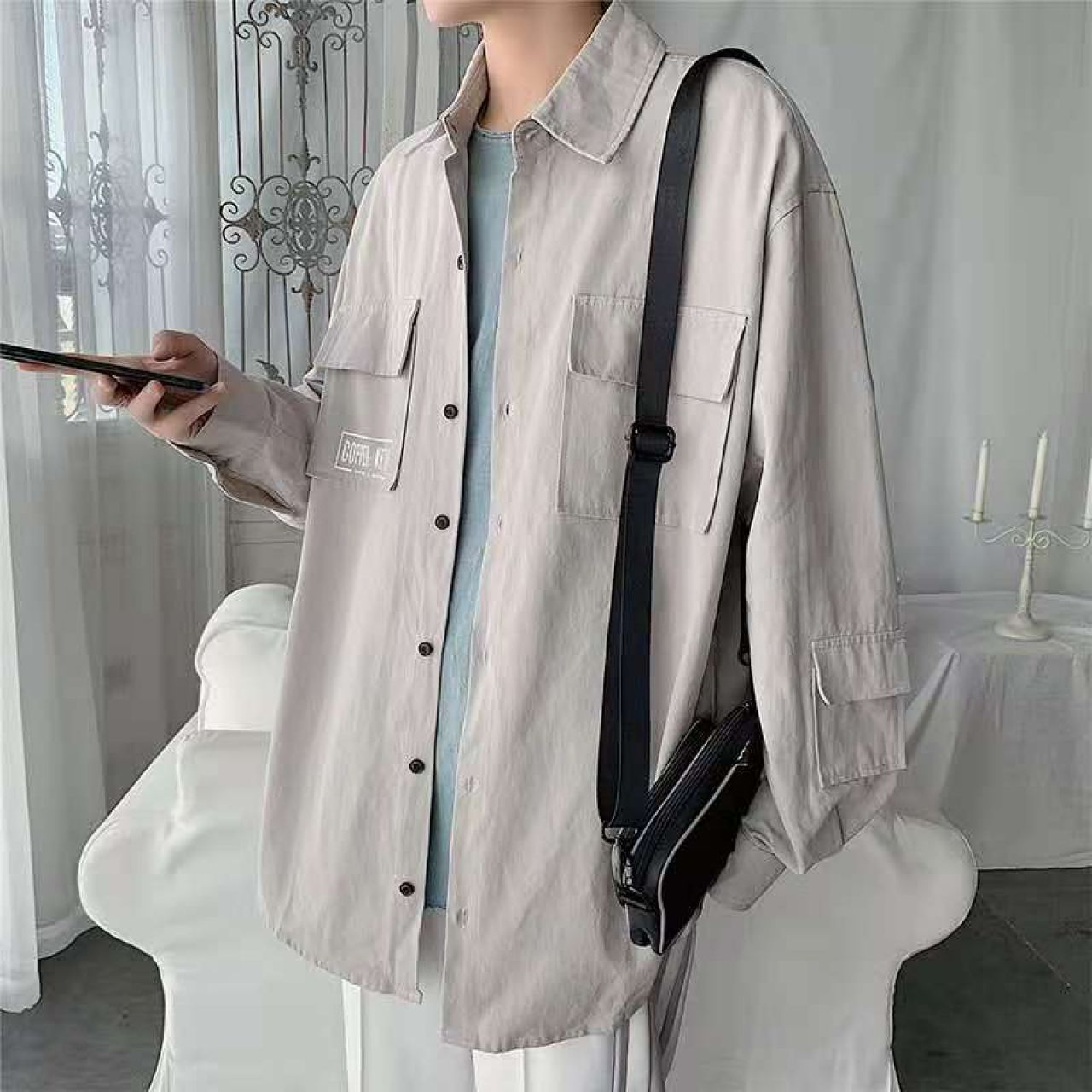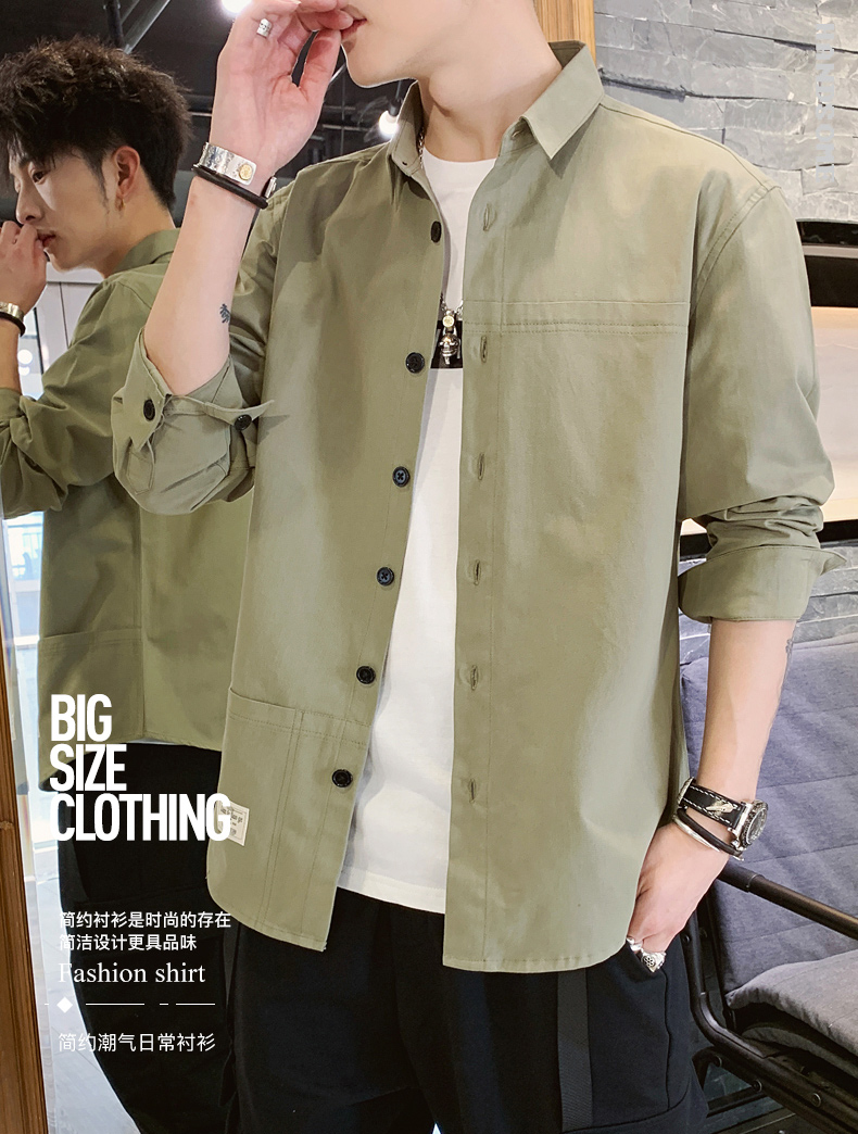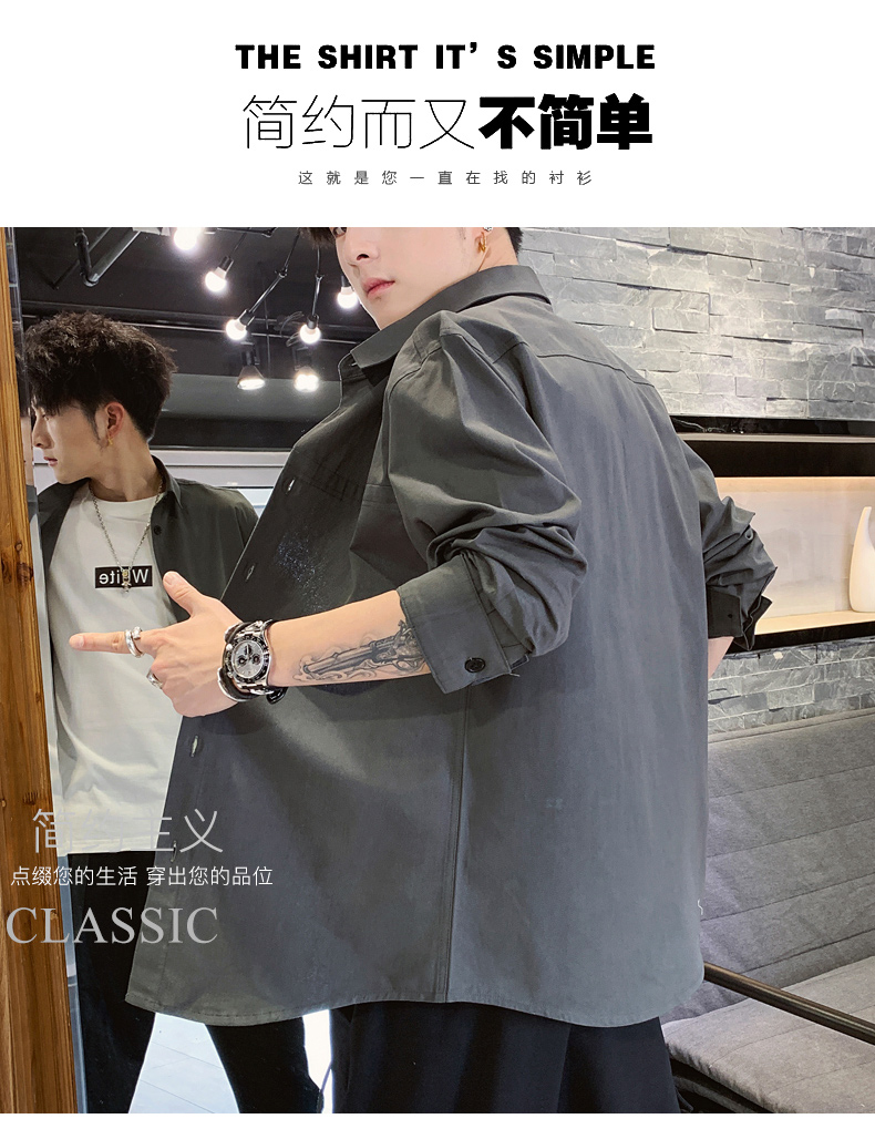 衬衣男韩版潮流帅气2020春秋新款长袖休闲宽松工装男士衬衫外套