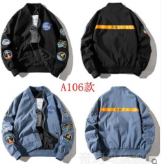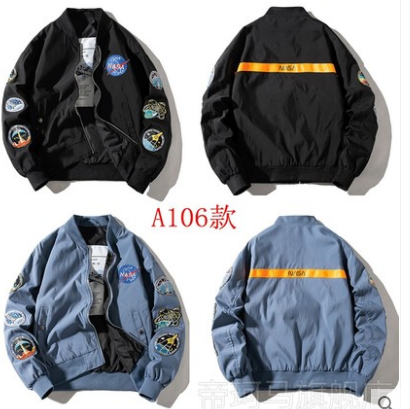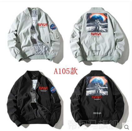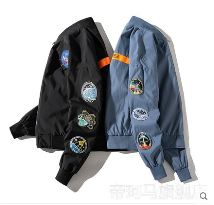 潮牌冬秋加棉NASA宇航员联名外套男女刺绣飞行员夹克潮棒球服棉衣