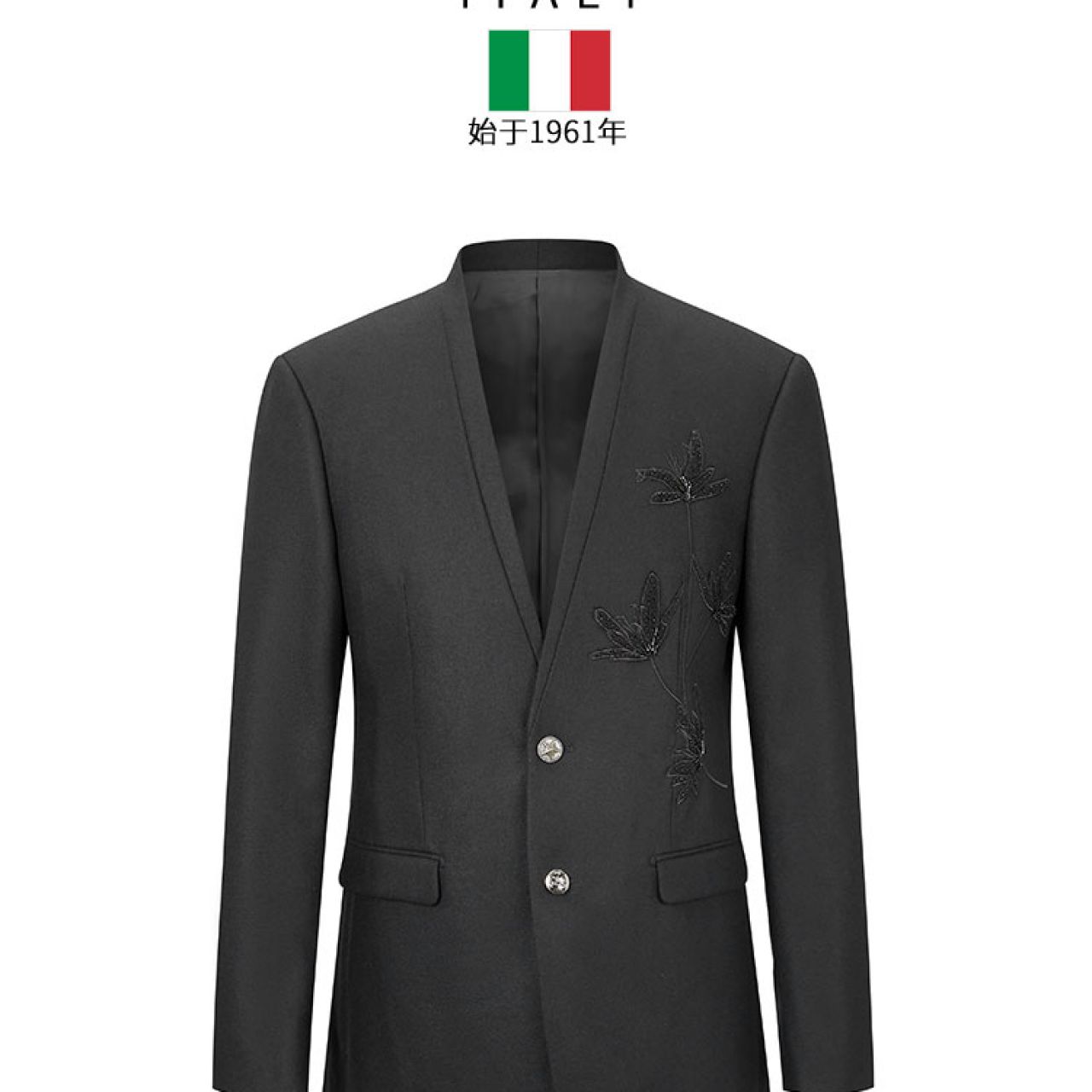 克莱切尼男式便西潮酷花卉串珠刺绣修身时尚西服