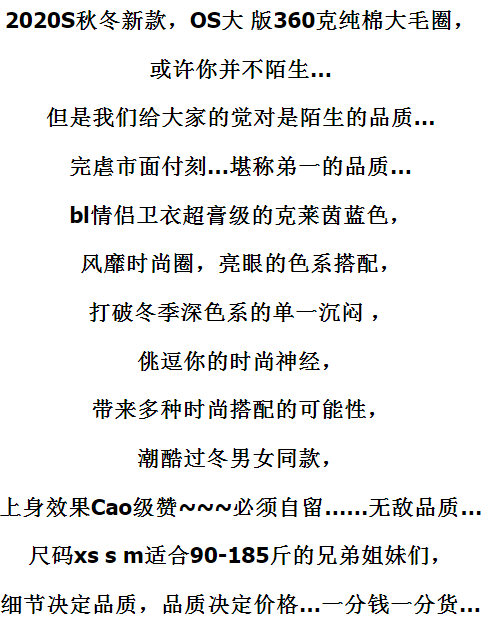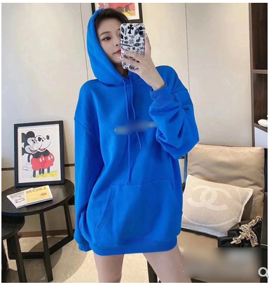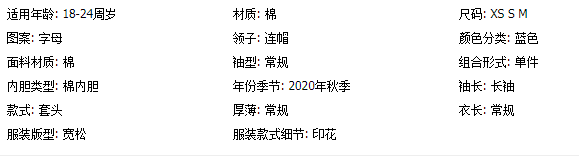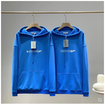 大巴黎字母印花情侣款连帽卫衣 时尚百搭潮牌长袖帽衫 蓝色 xs s m