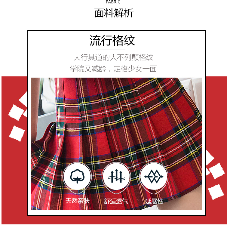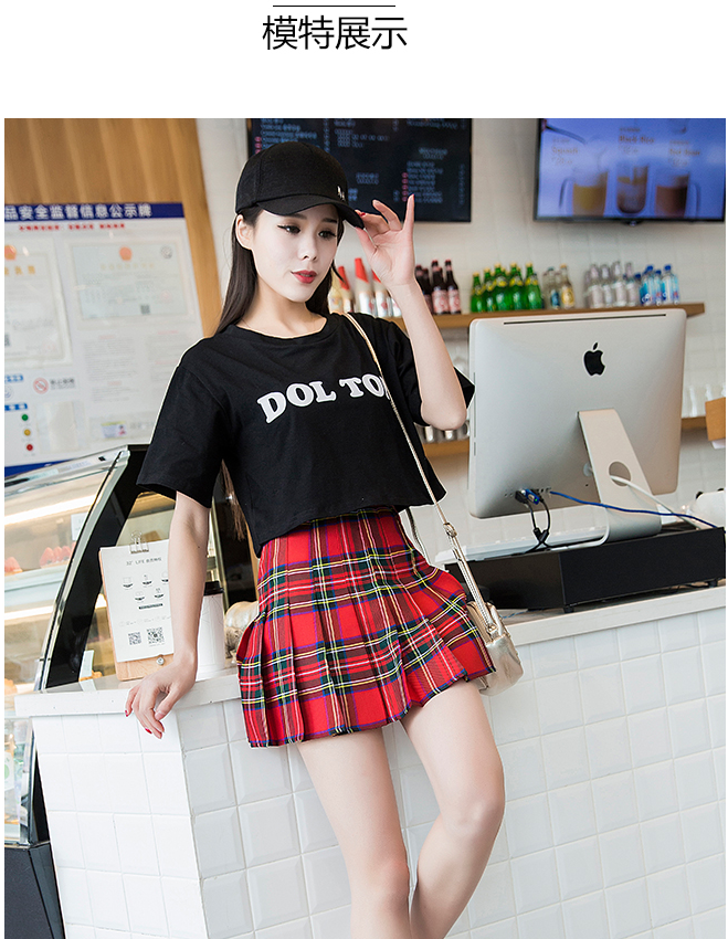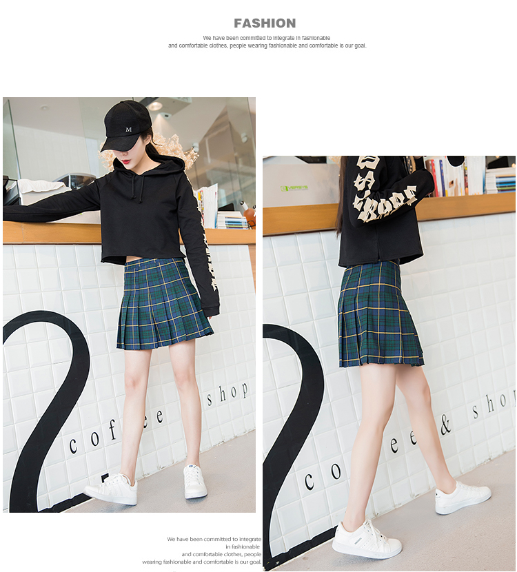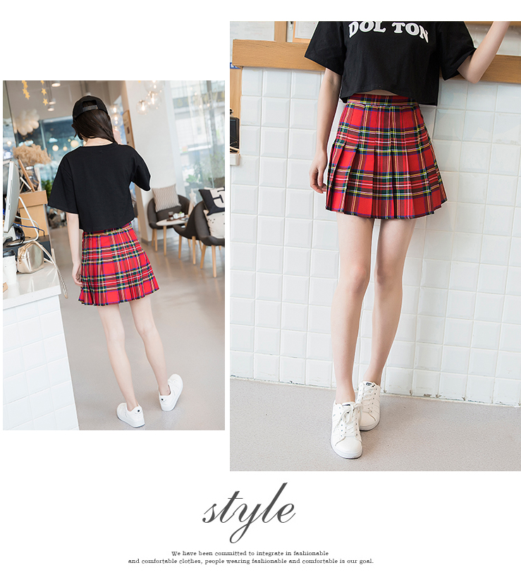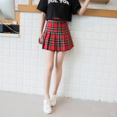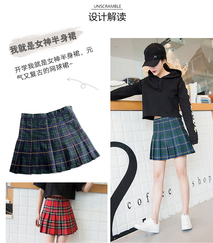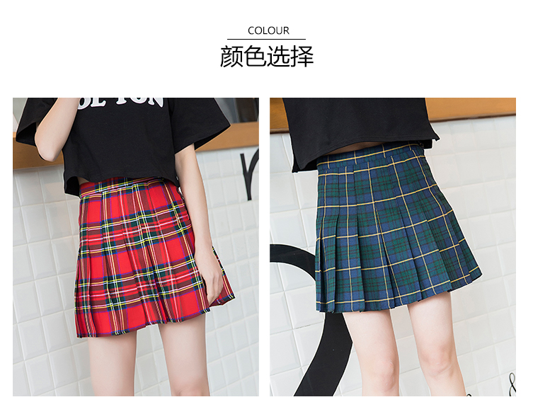 新款欧美复古高腰显瘦格子百褶裙 少女反走光a字短裙半身裙裤女潮