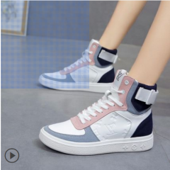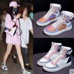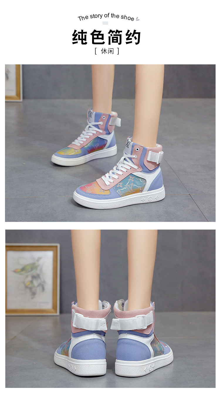 高帮鞋女2020秋冬新款潮鞋爆款百搭学生女鞋镭射高腰运动加绒板鞋