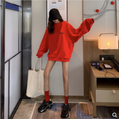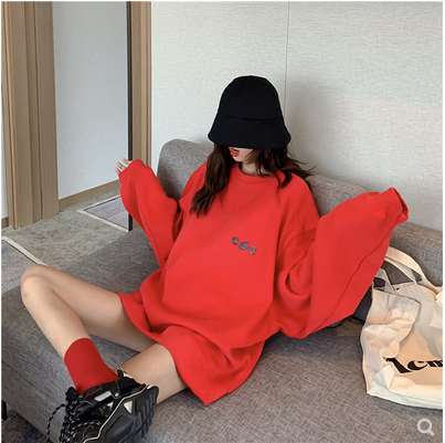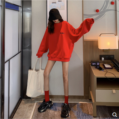 香港潮牌2020秋冬新款红色套头宽松卫衣女刺绣网红中长款百搭上衣 红色 黑色 S M L XL 2XL