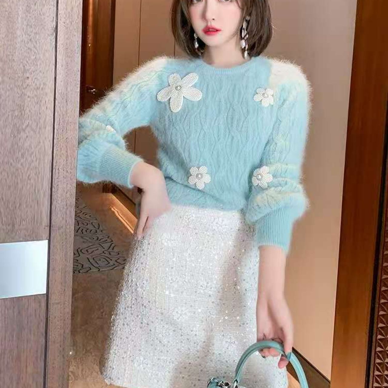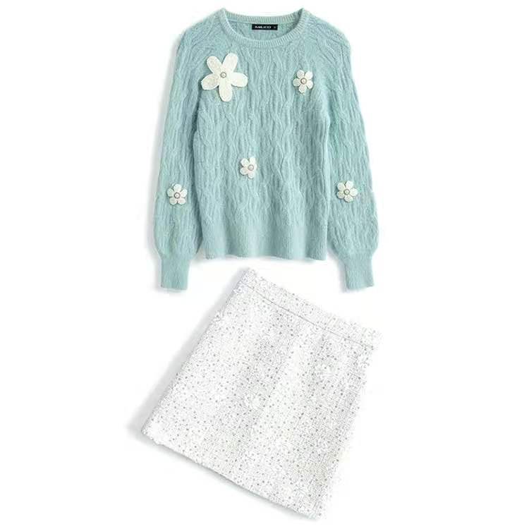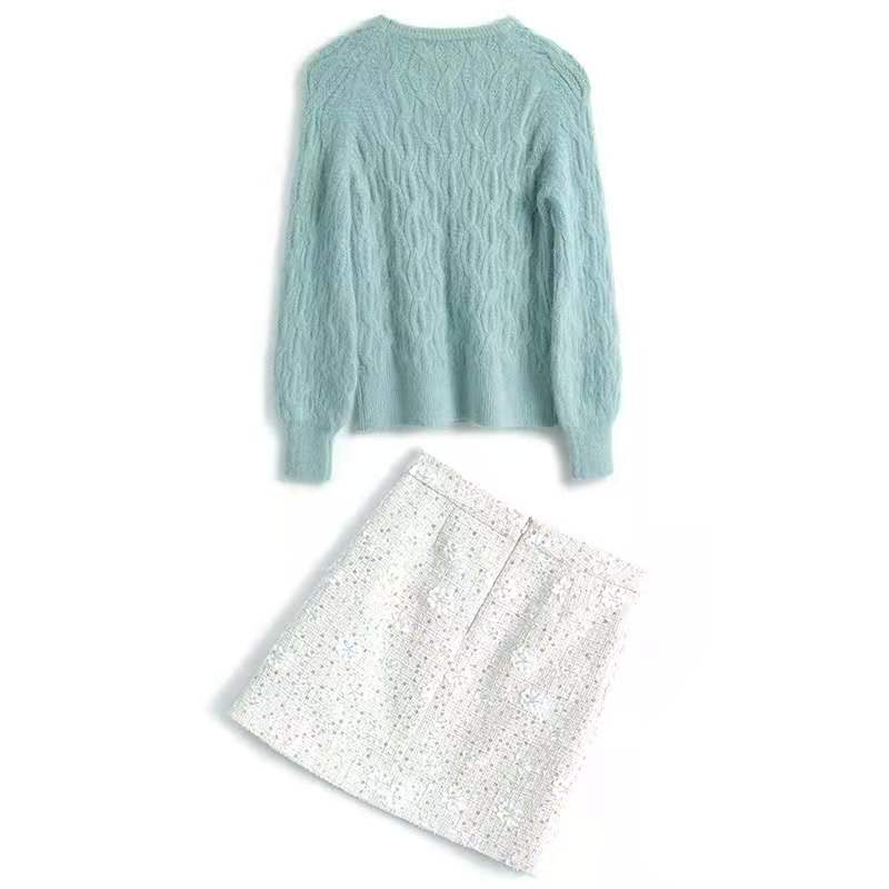 MIUCO温柔慵懒套头圆领毛衣+高腰粗花呢半身裙套装女2020冬季新款