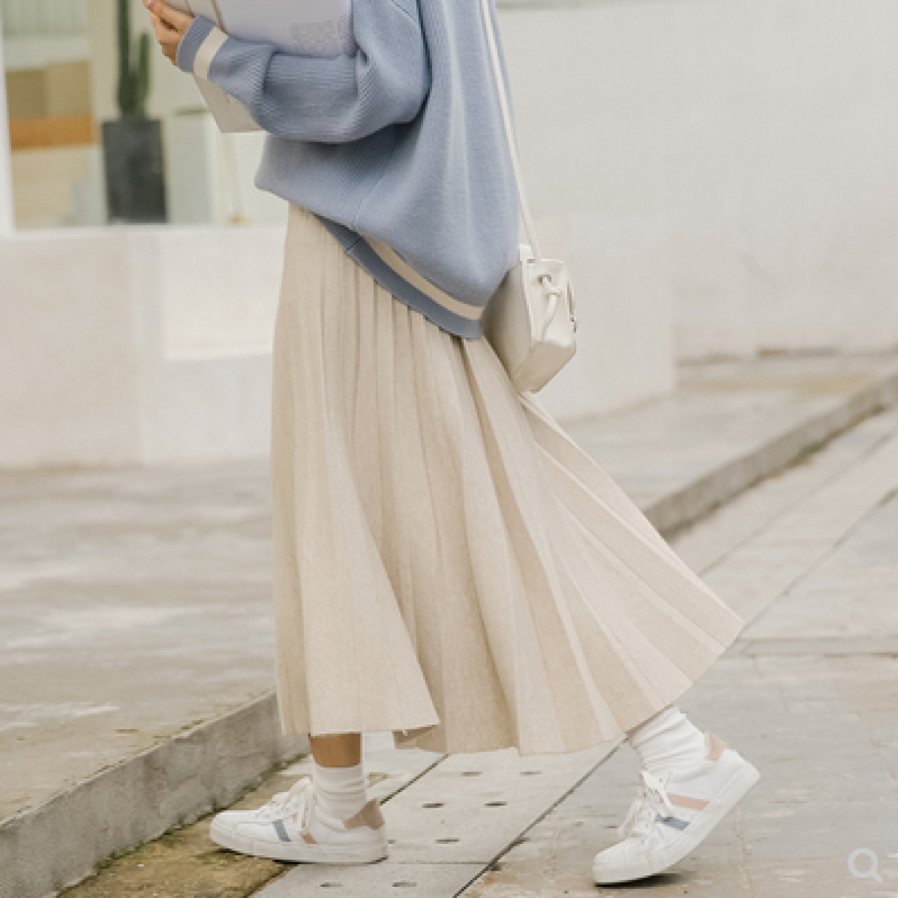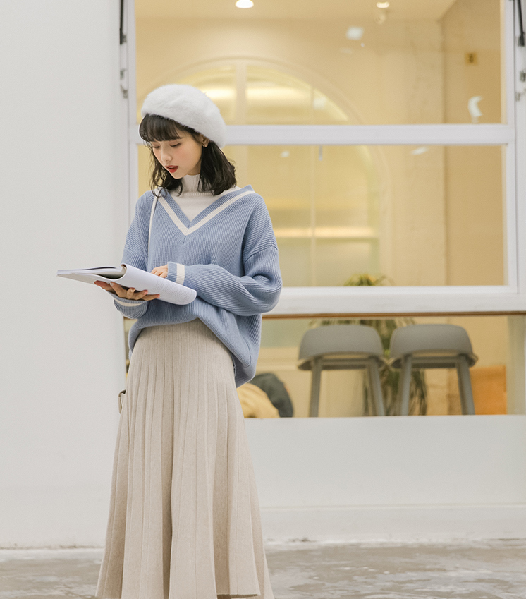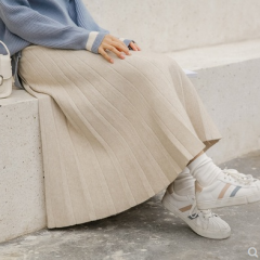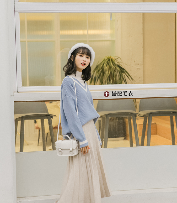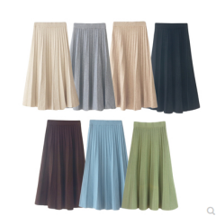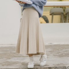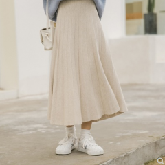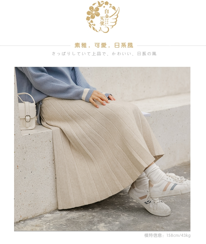 白金天使针织半身裙女秋冬学院风松紧腰A字百搭中长款学生百褶裙
