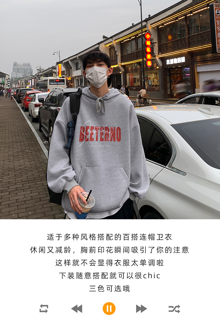 男士卫衣连帽秋季上衣潮流百搭宽松bf慵懒风外套ins港风学生秋装