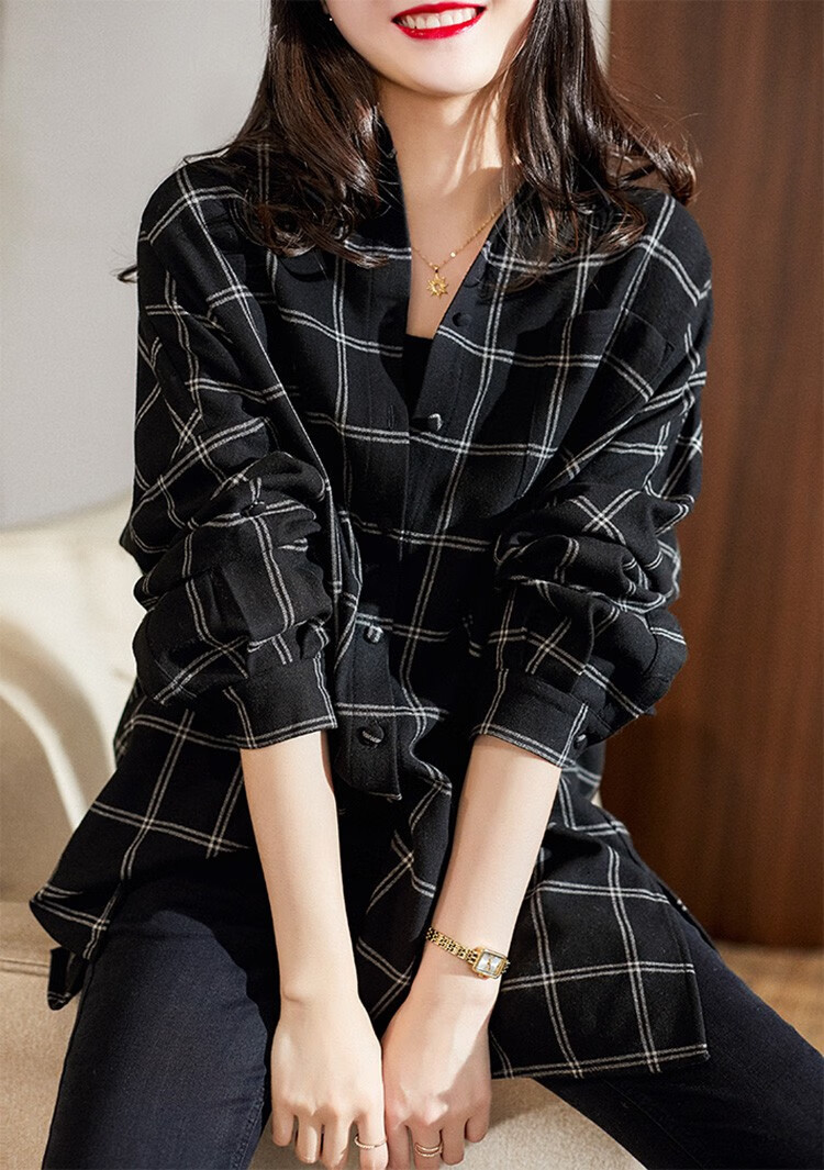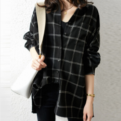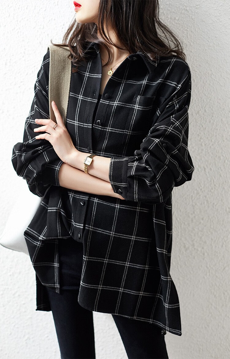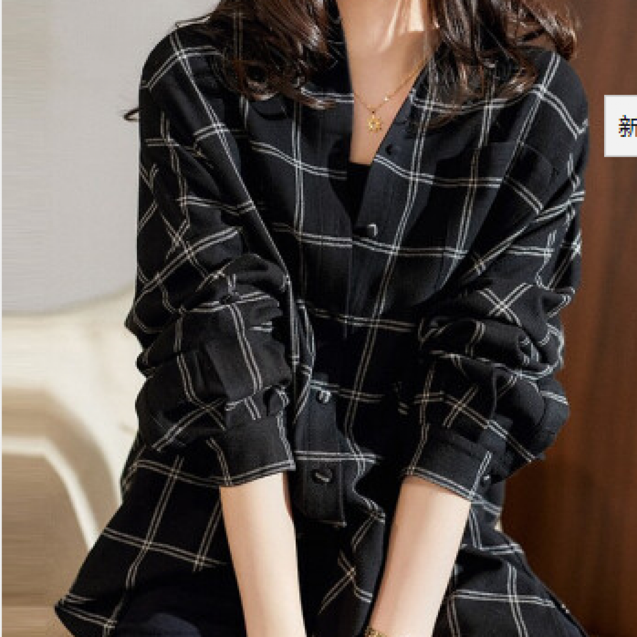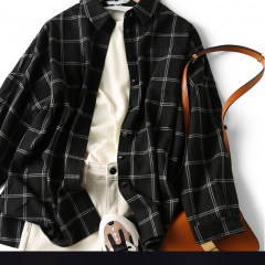 商品名称:南极人 衬衫女长袖秋装新品2020格纹印花经典时尚polo领复古简约百搭休闲衬衣女士上衣 N5-NR182-7639-黑白格 M