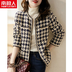 南极人 短外套女毛呢小香风秋装2020新款韩版时尚千鸟格气质优雅通勤百搭宽松显瘦女士上衣