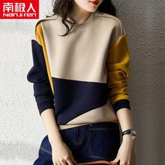 南极人 卫衣女宽松圆领秋季2020新品撞色拼接休闲简约百搭女士上衣韩版时尚外套