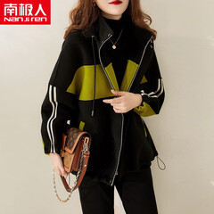 南极人 毛呢短外套女秋冬季新款2020韩版时尚宽松显瘦连帽撞色拼接休闲小个子女装简约百搭上衣