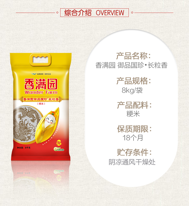 香满园 御品国珍 长粒香大米 8kg 长粒米