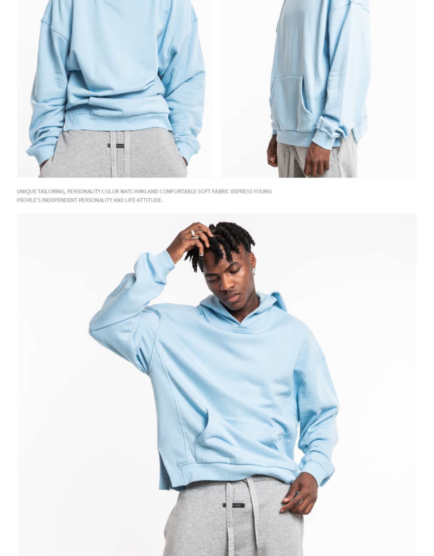 颜色: 黑色 灰色 蓝色 袖型: 落肩袖 货号: 001细分 风格: 潮