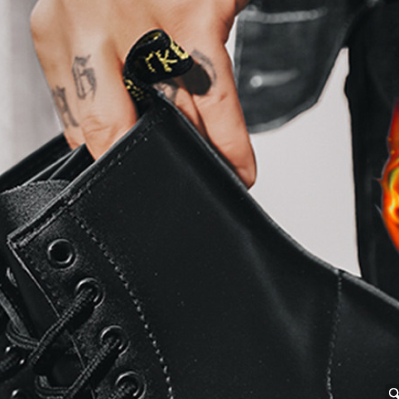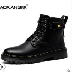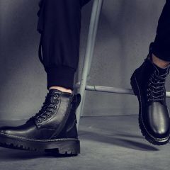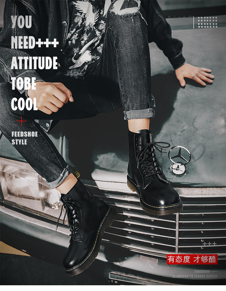 2020新款秋冬马丁靴子英伦高帮男靴皮鞋子ins工装男士潮中帮百搭 圆头 黑色 38-4