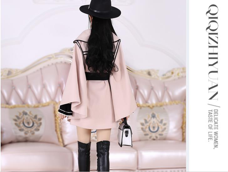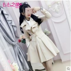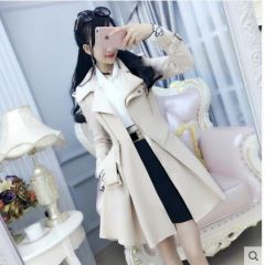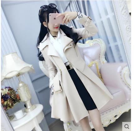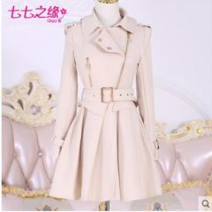 七七之缘春秋新品女装 米色英伦气质修身长袖中长款风衣外套 长袖 粉色 l