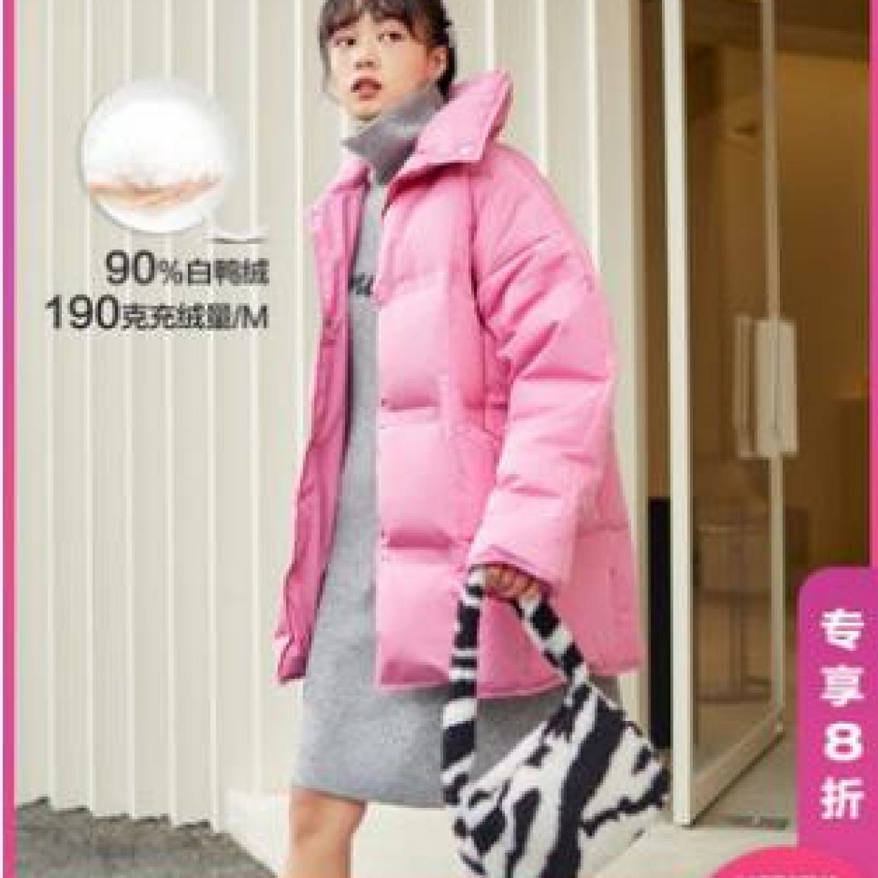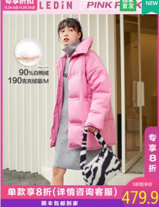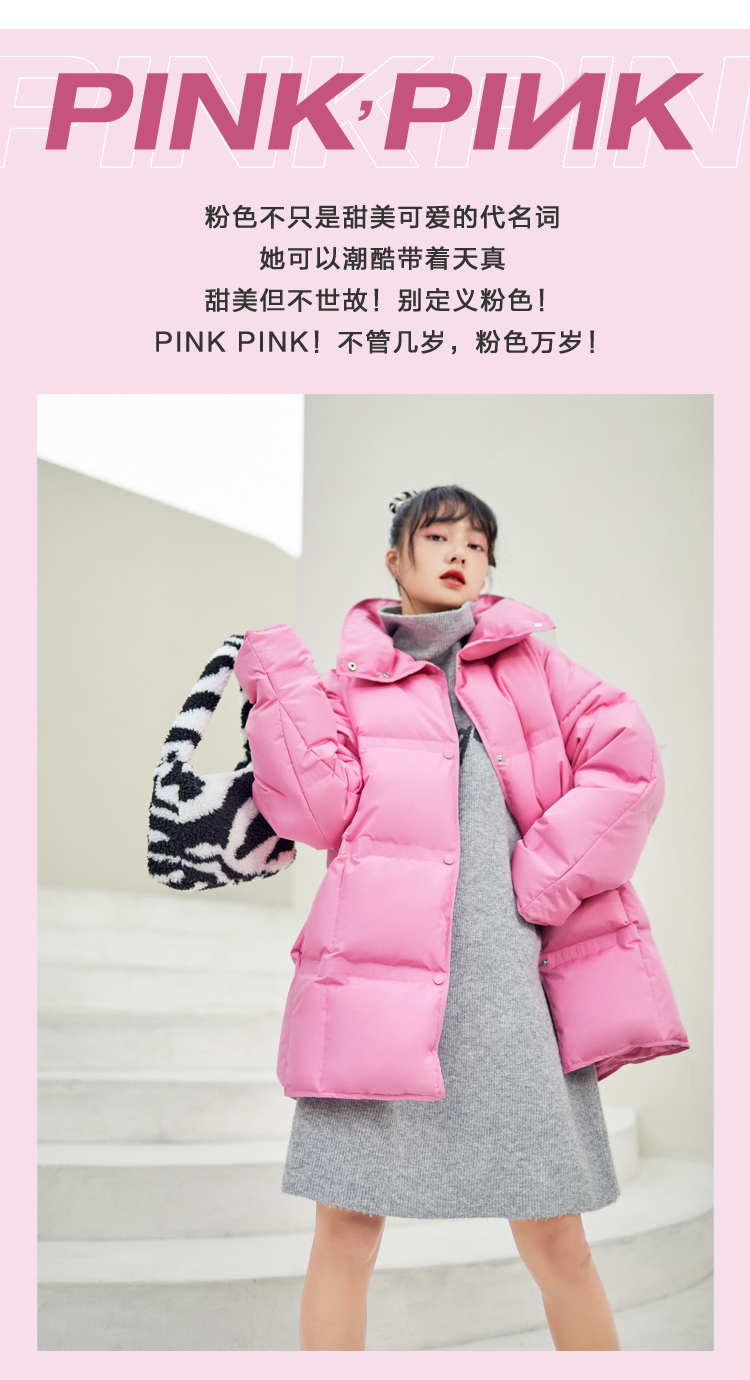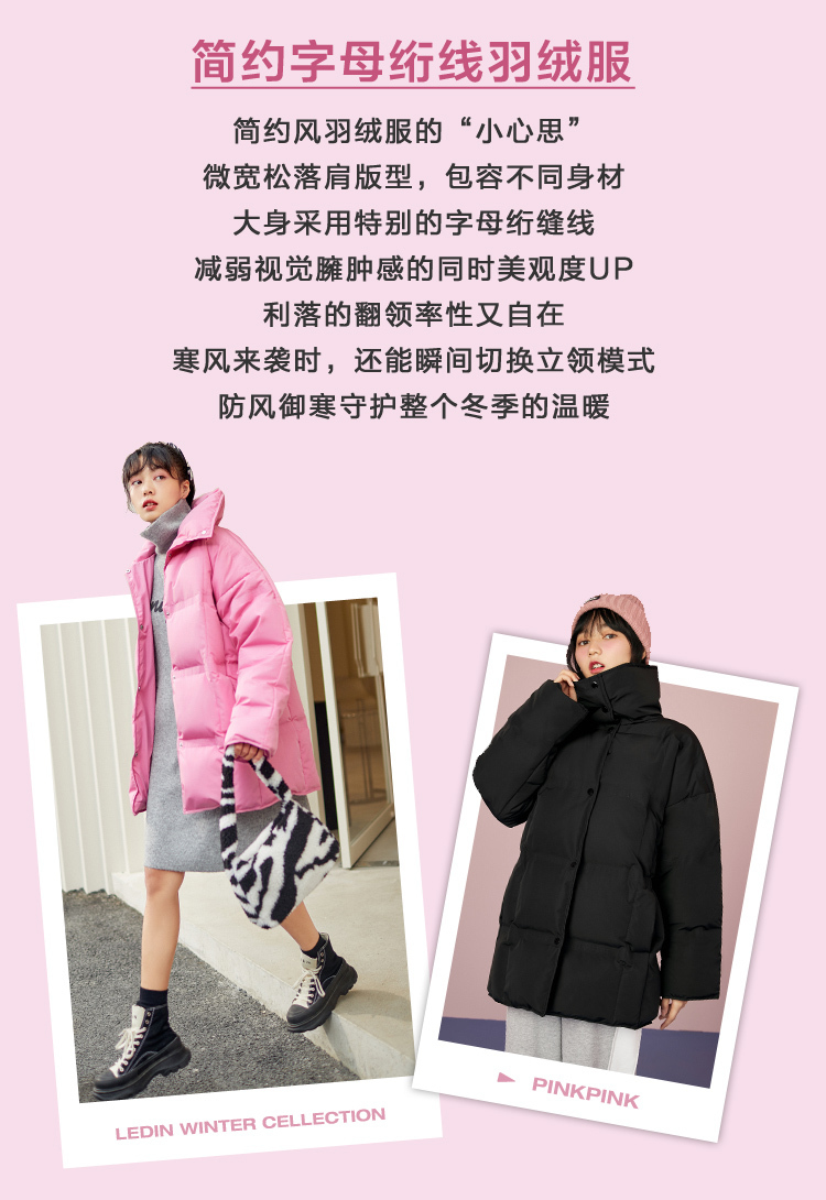 乐町2020年冬季新款小个子厚外套简约字母绗线羽绒服