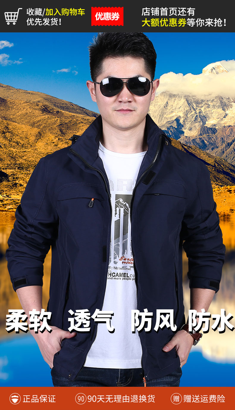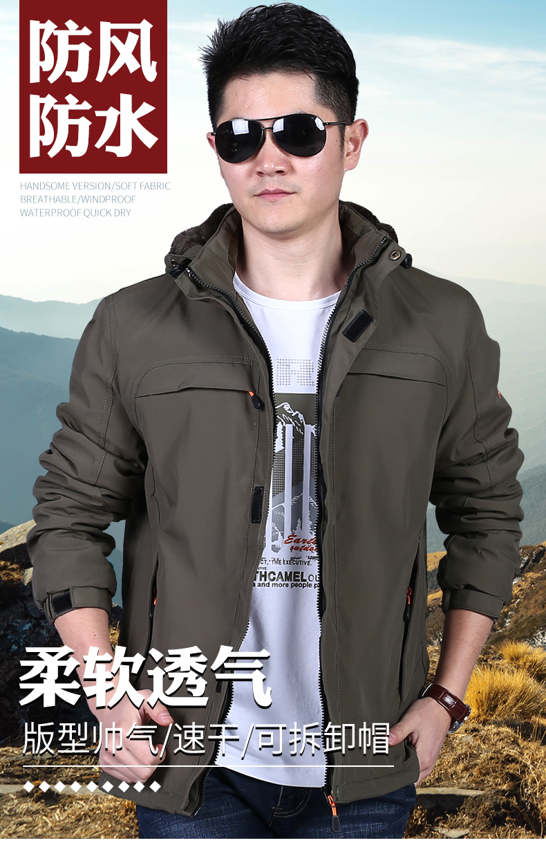 冲锋衣男春秋季中年男士外套中长款休闲夹克男装2020新款秋装上衣 男装外套 黑 m