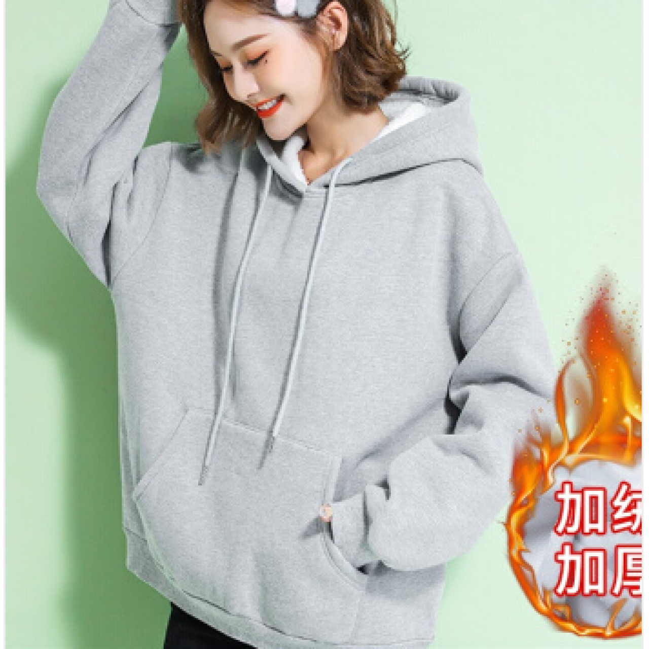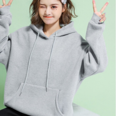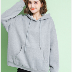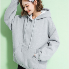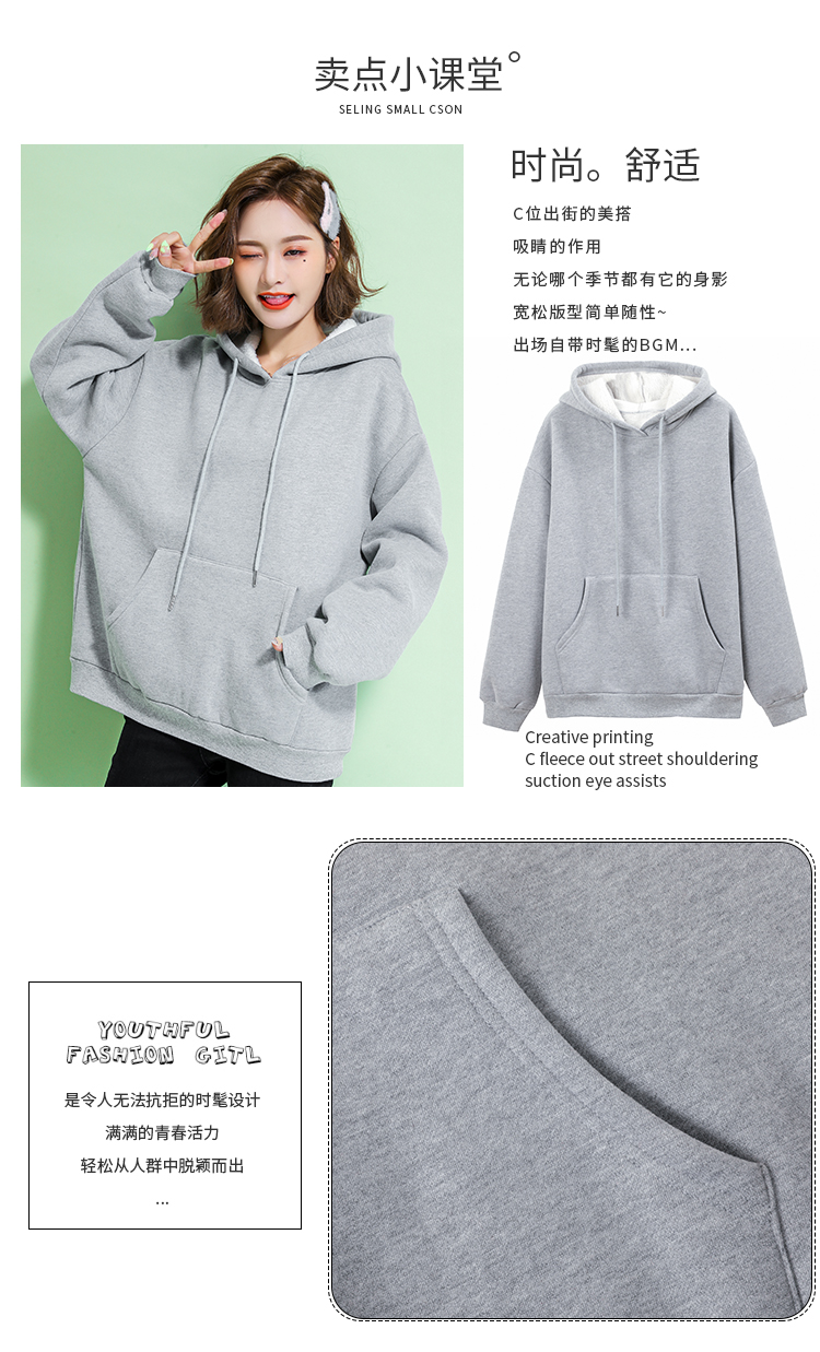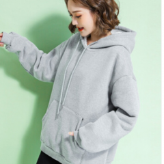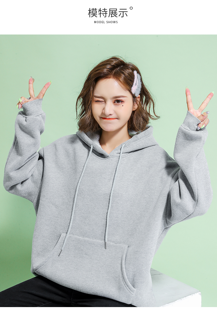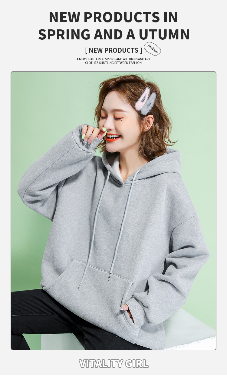 苹纳莎卫衣女加绒加厚宽松大码冬季女装时尚韩版百搭休闲学生纯色情侣装上衣外套潮 浅花灰加绒
