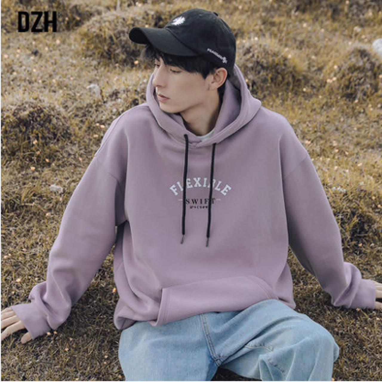 男士紫色情侣加绒卫衣男连帽宽松外套2020新款潮流秋冬情侣装潮牌