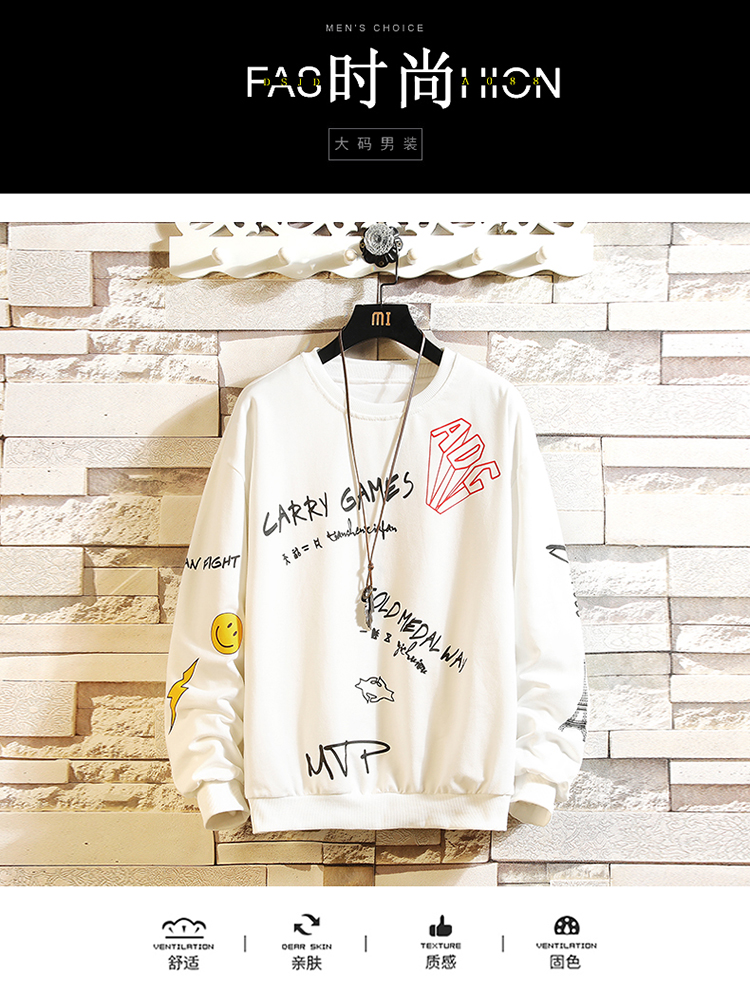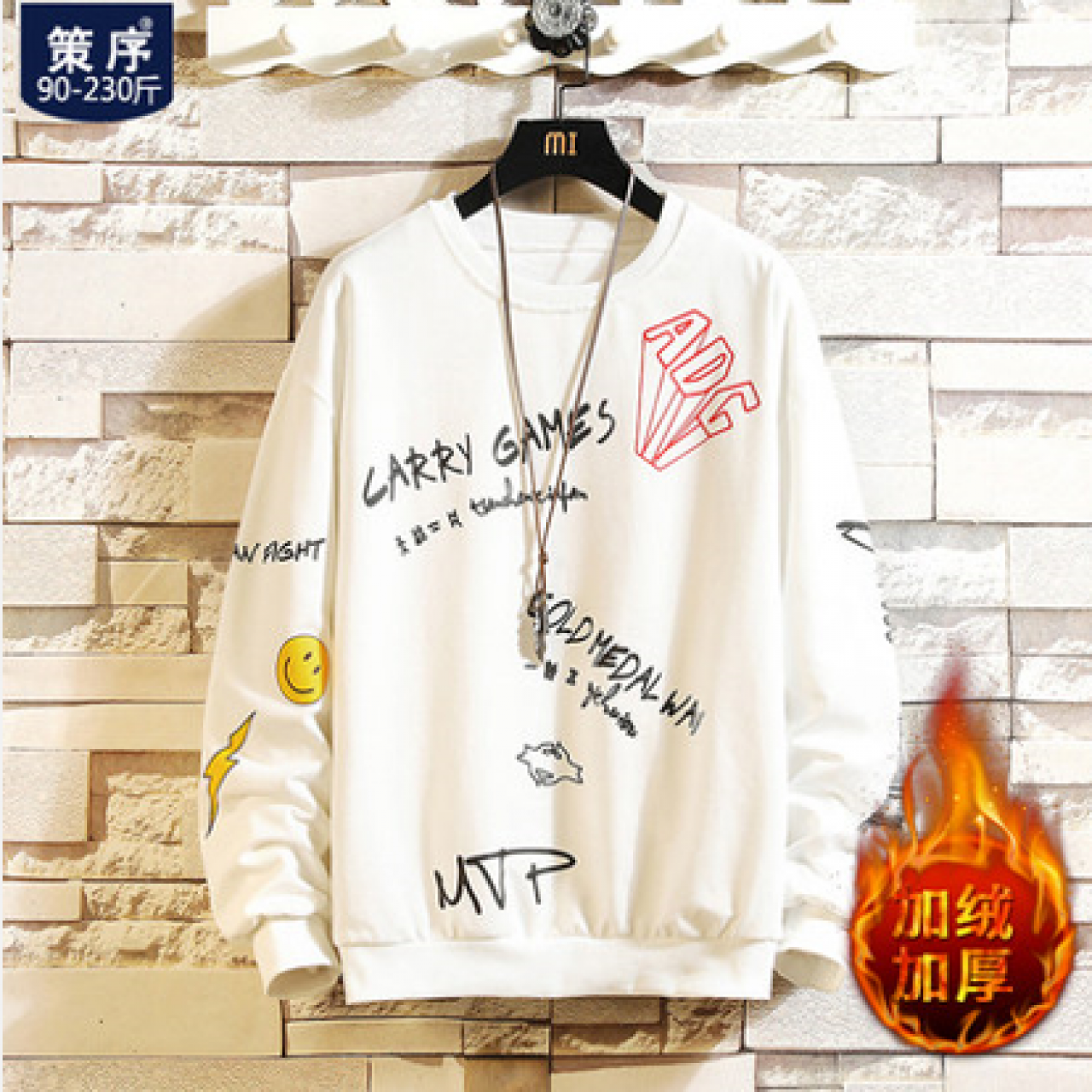 秋冬装2020新款圆领卫衣男韩版潮流大码胖子宽松加绒内搭上衣服