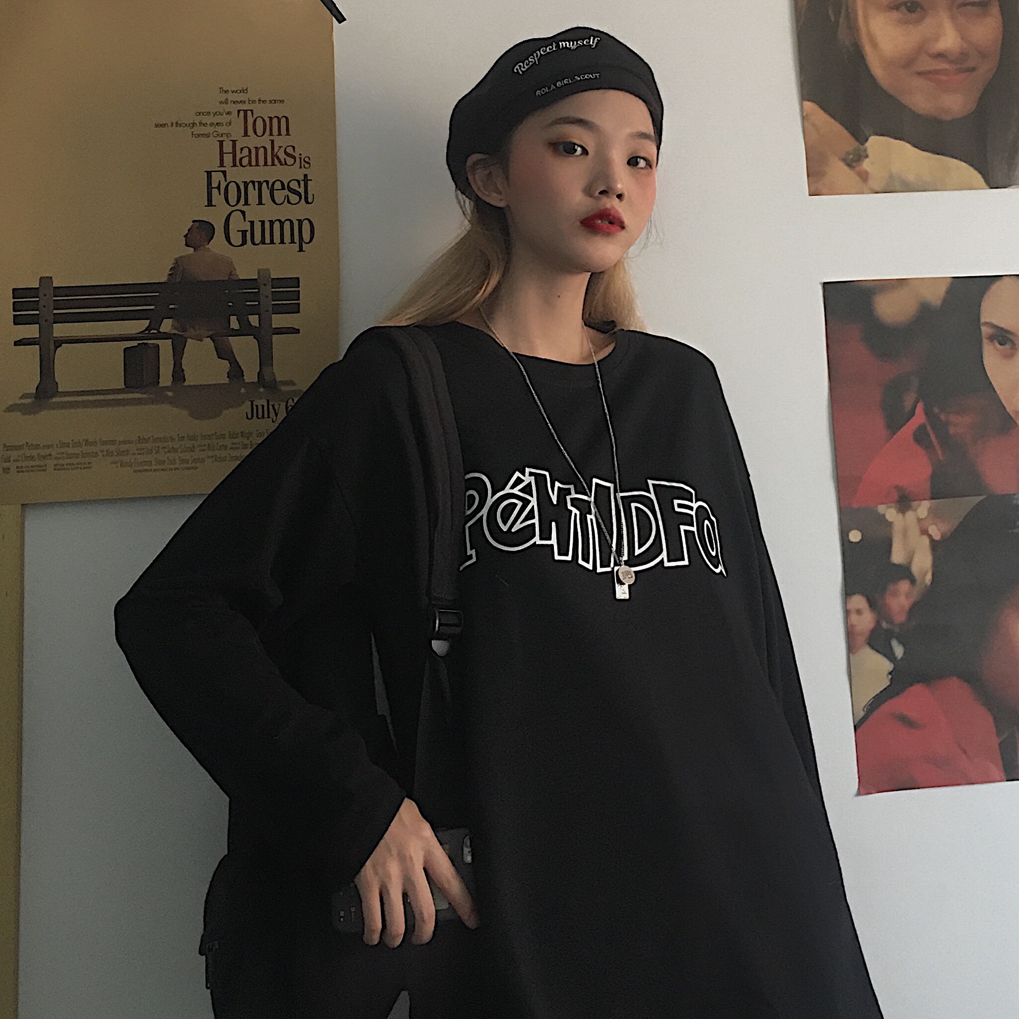 风采兔 2019新款ins网红学生上衣女春秋款港味百搭宽松bf嘻哈长袖t恤女潮