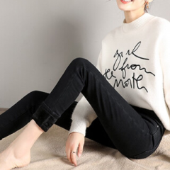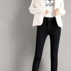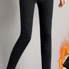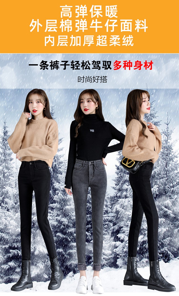佐马仕 加绒牛仔裤女士保暖弹力显瘦显高修身九分铅笔小脚加厚长裤外穿休闲百搭 2238黑色加绒长裤