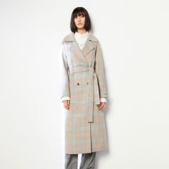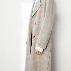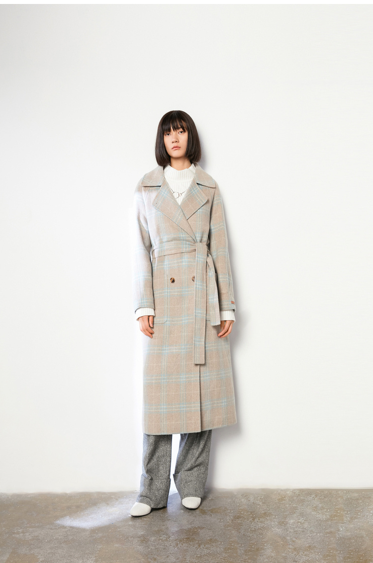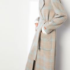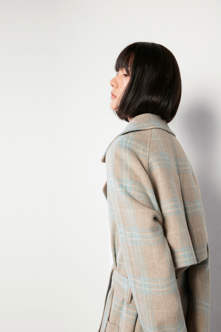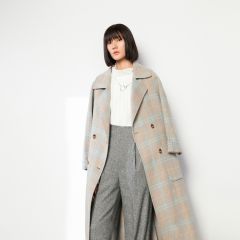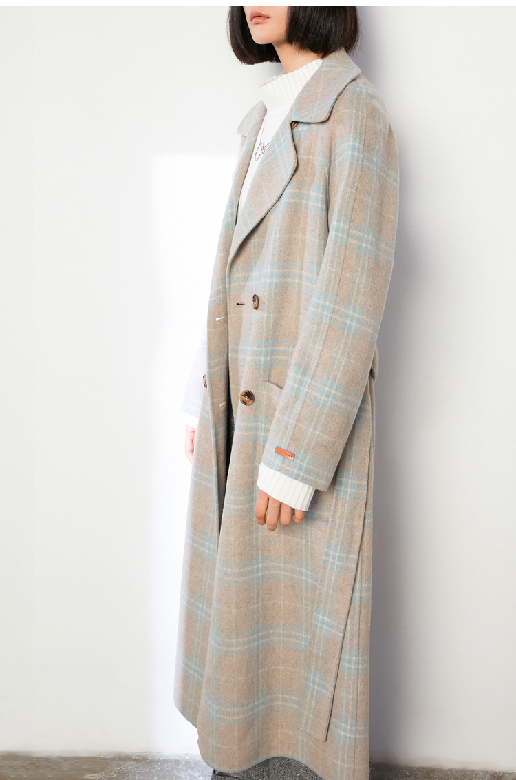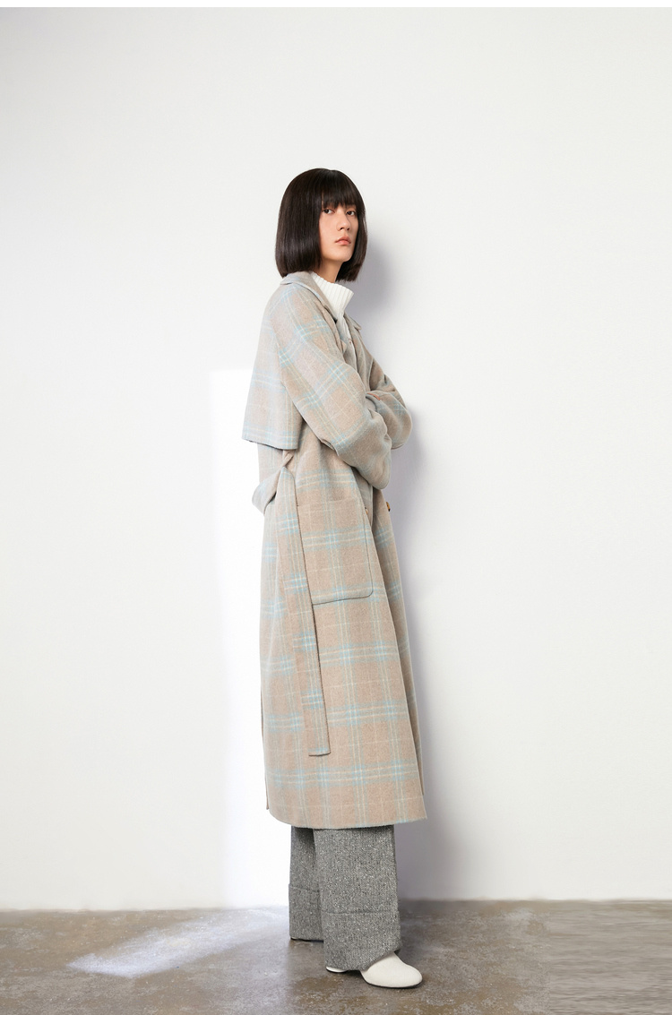 LILY2019冬新款大格纹长款双面呢羊毛翻领毛呢外套