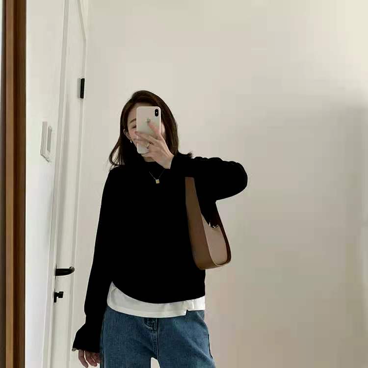 叠穿各种衣服宽松不规则卷边破洞开叉加绒秋冬打底白T恤