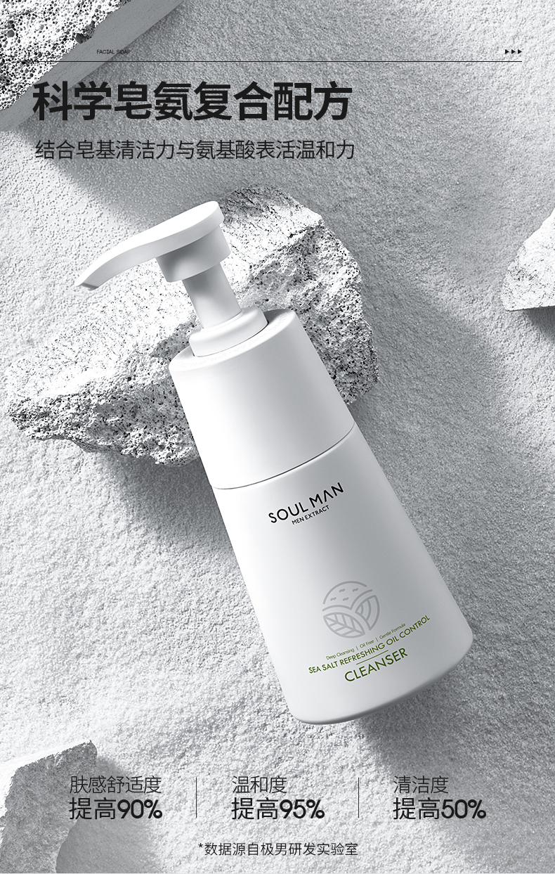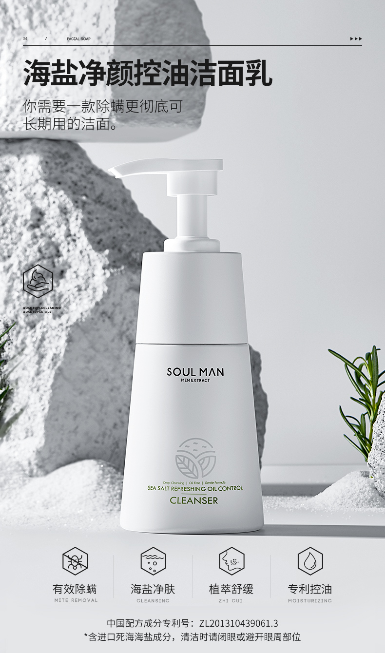 男soulman男士控油除螨洗面奶男200g(去黑头去螨虫去油洗面奶 去角质洗脸补水洁面乳男士护肤)