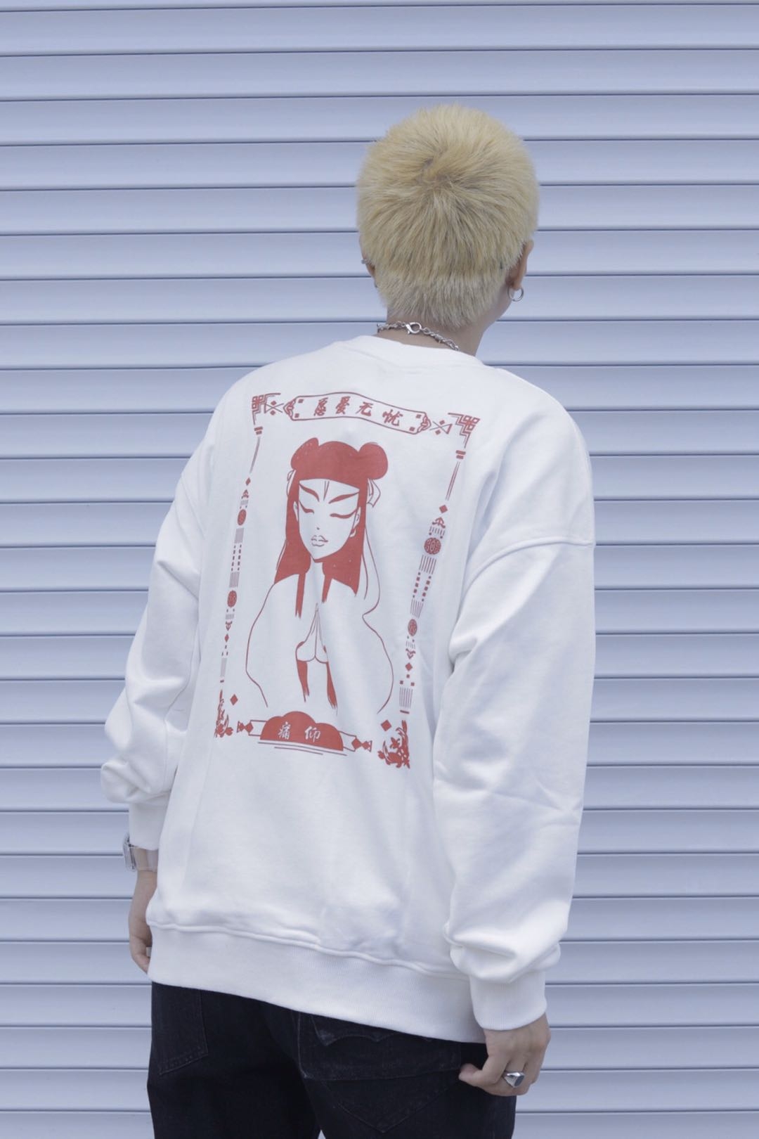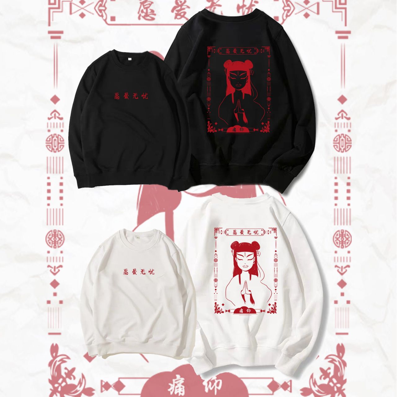 摇滚电波设计痛仰乐队周边卫衣刺绣宽松套头外套国潮秋冬愿爱无忧 宽松 黑色 白色 S M L XL XXL XXXL