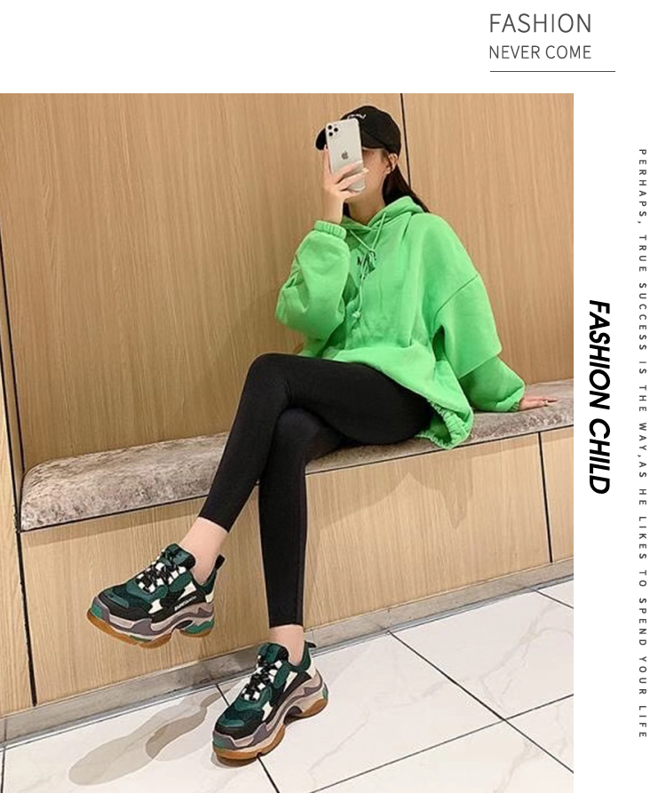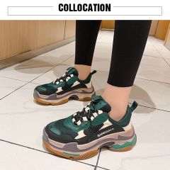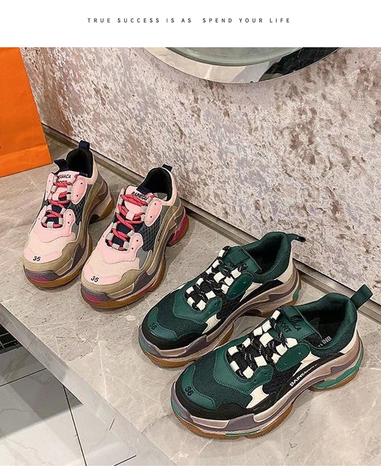 网面透气老爹鞋女厚底2020秋冬季新款百搭真皮运动鞋休闲系带单鞋