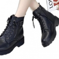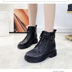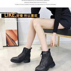 2020秋冬季新款百搭加绒方头英伦风短靴粗跟后拉链漆皮时尚女靴子