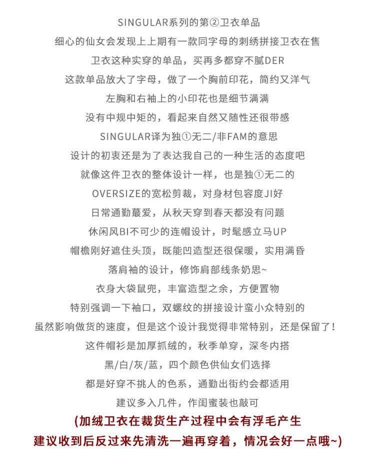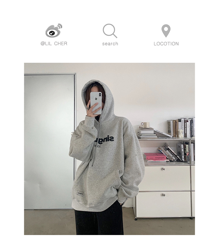 首页> 男装/ 女装/ 内衣> 当季流行> 卫衣女> LIL CHER灰色连帽卫衣女加绒加厚2020新款秋冬宽松韩版慵懒风上衣 灰色 S