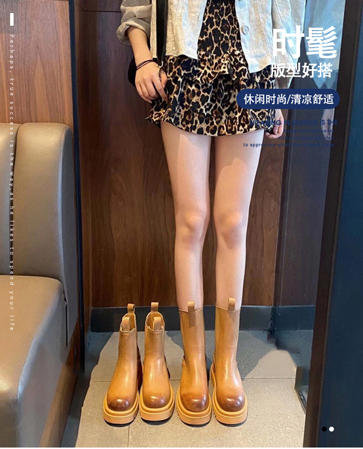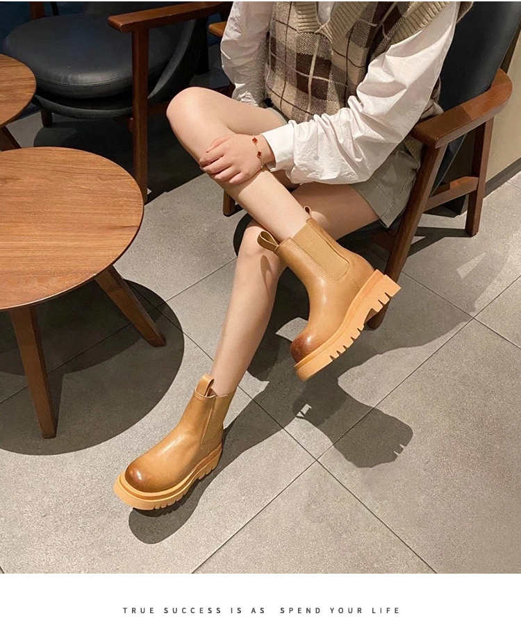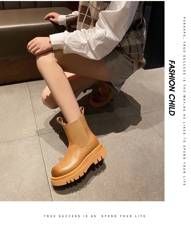 牛皮切尔西靴厚底2020秋季新款百搭网红烟筒靴女英伦风中筒马丁靴