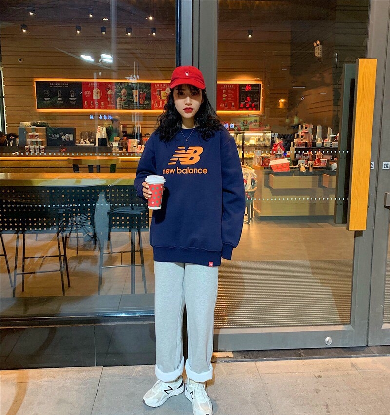 新百伦卫衣New Balance经典款圆领宽松加绒NB上衣秋冬男女情侣装