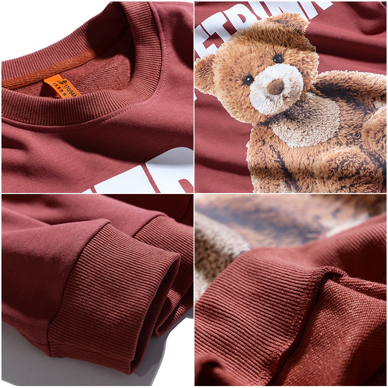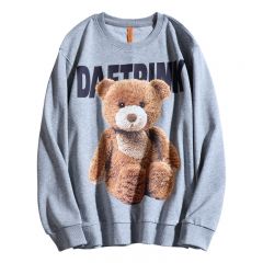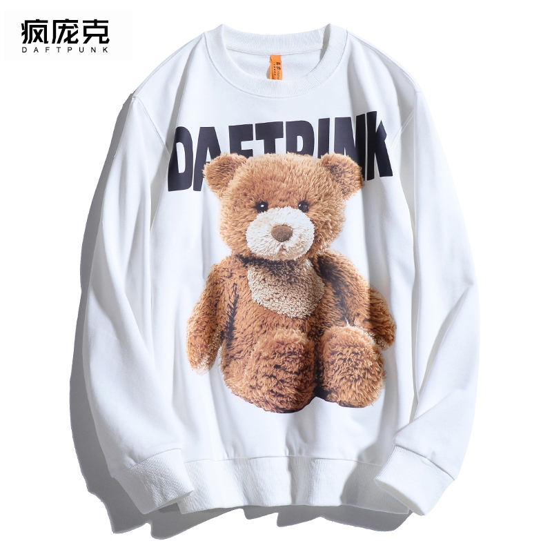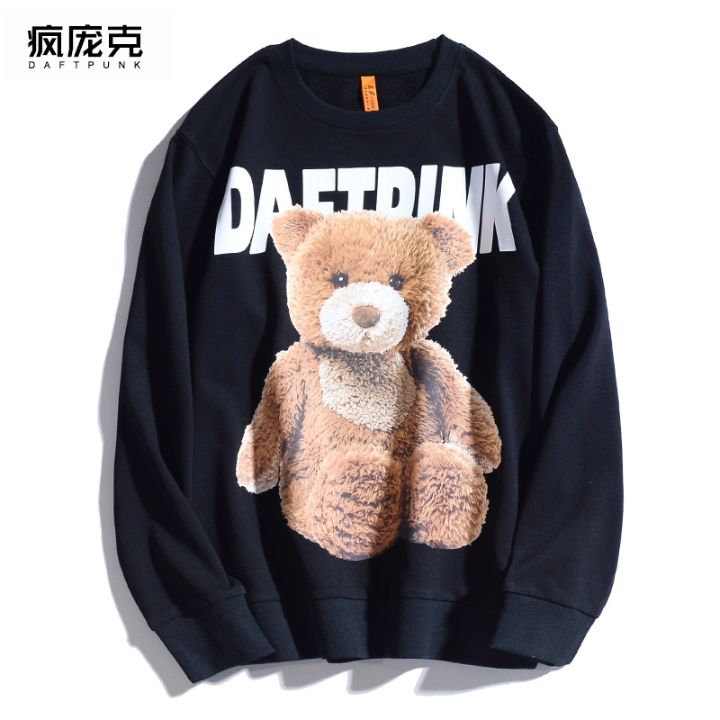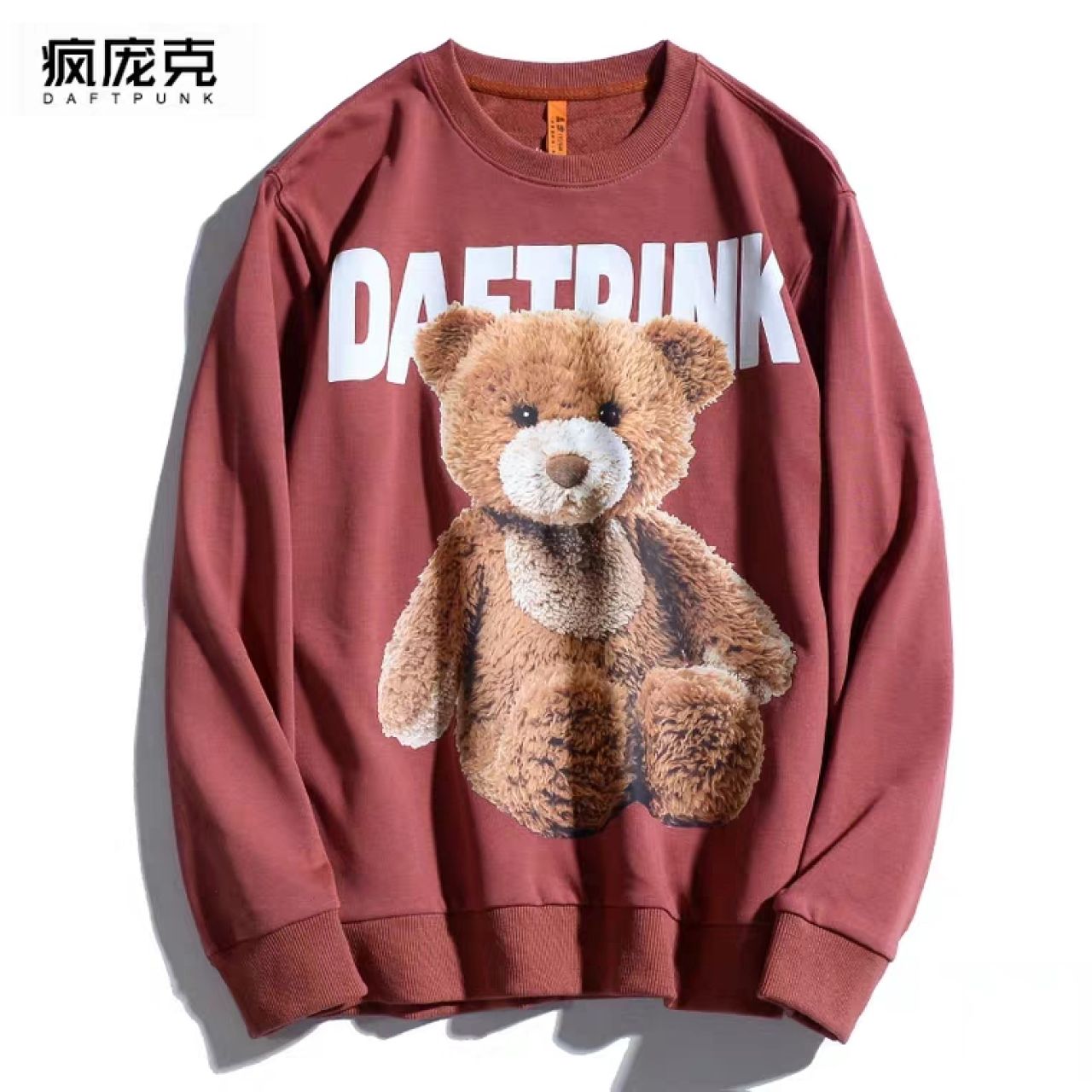 长袖t恤男女秋季卡通熊印花宽松港风潮牌2020新款情侣套头卫衣潮 高性价比 吸睛卡通熊印花 可盐可甜