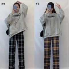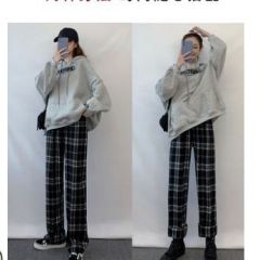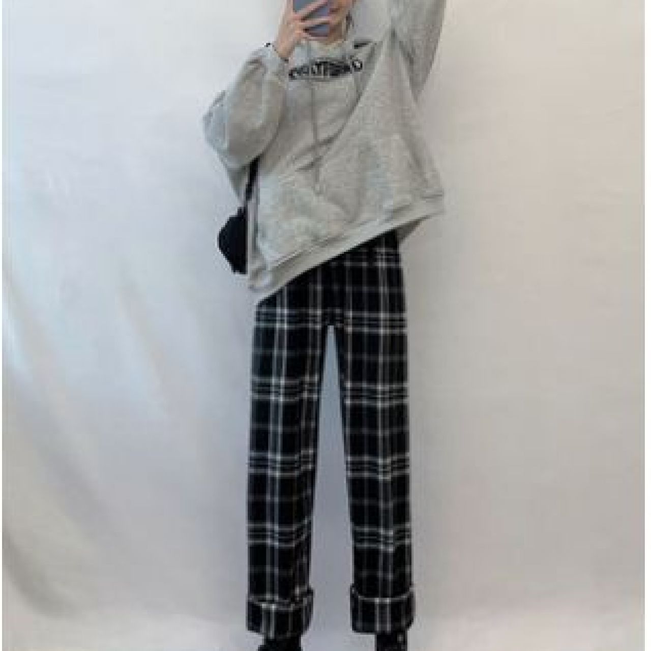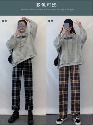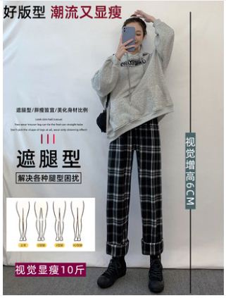 黑白格子裤女2020年新款春秋冬宽松直筒高腰显瘦百搭休闲阔腿裤子