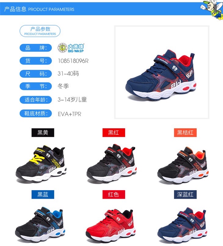 大黄蜂2020爆款男童棉鞋加绒加厚冬季男童