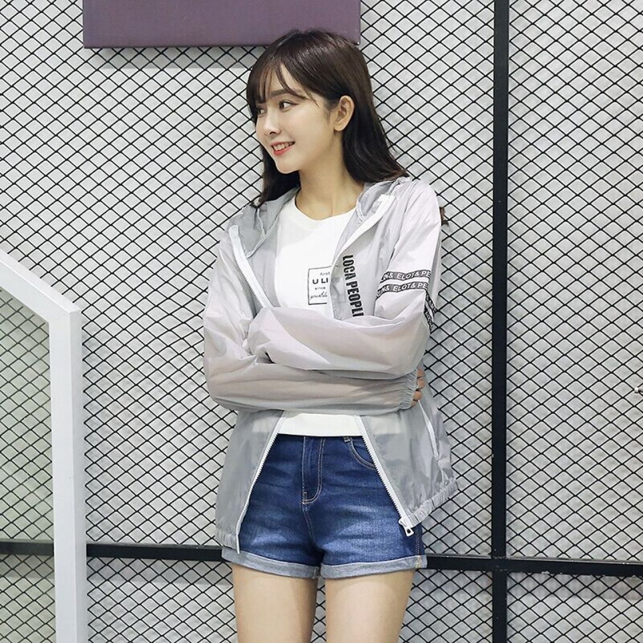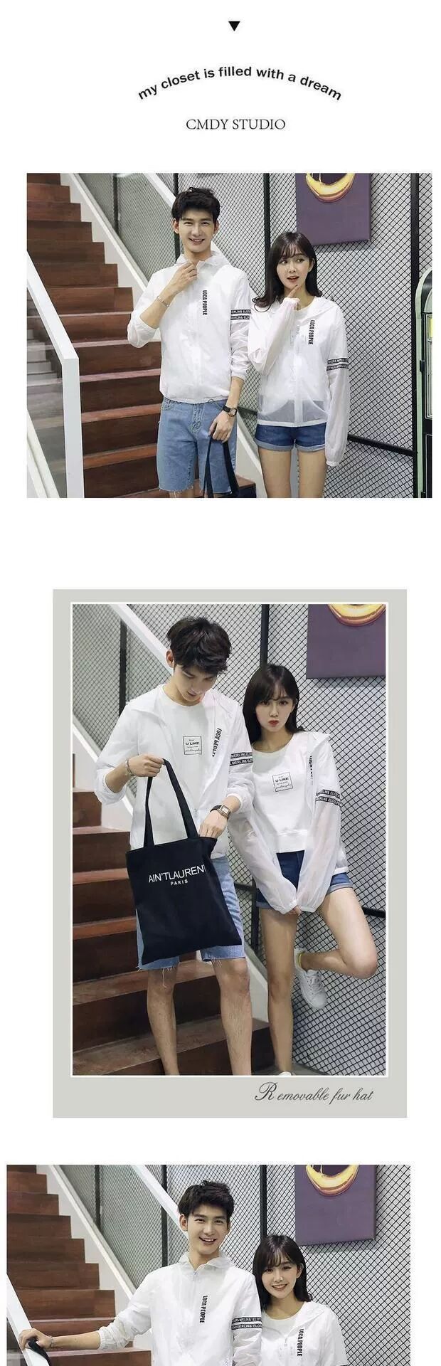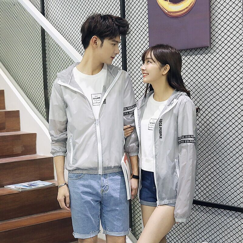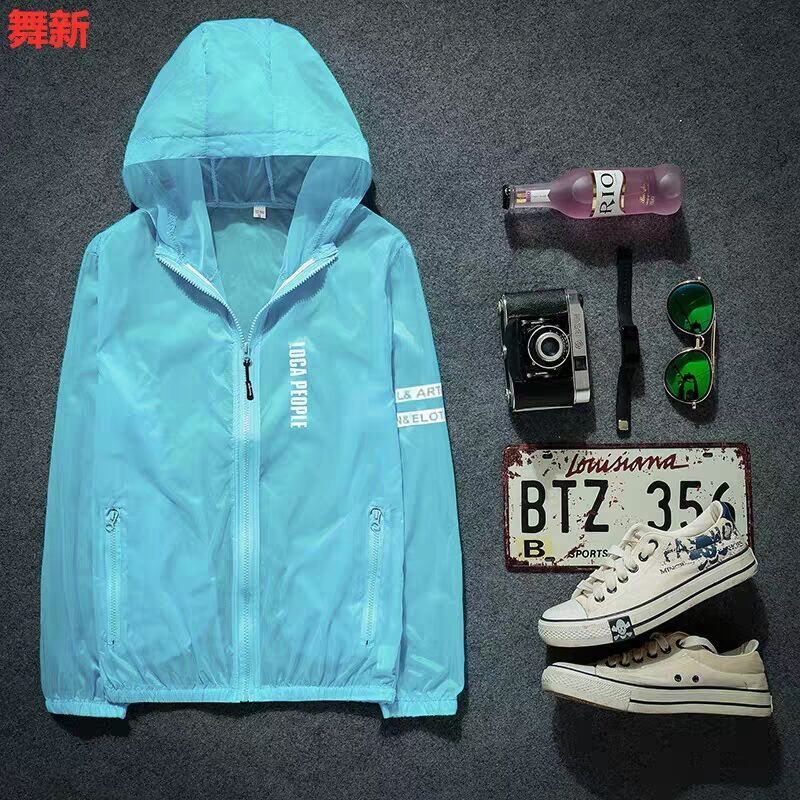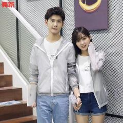 丹杰仕 夏季男女情侣防晒衣潮男时尚韩版修身连帽薄款印花夹克上衣